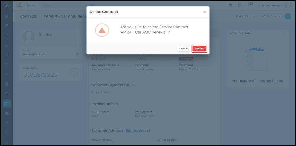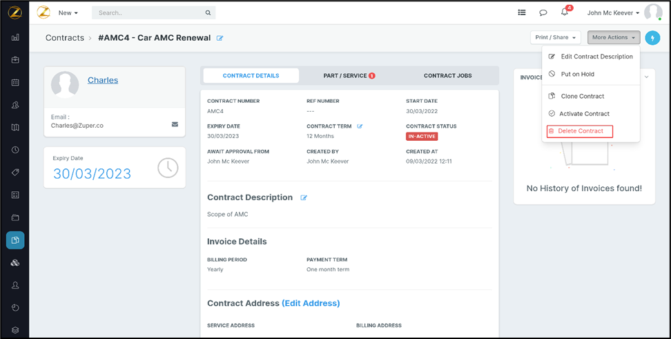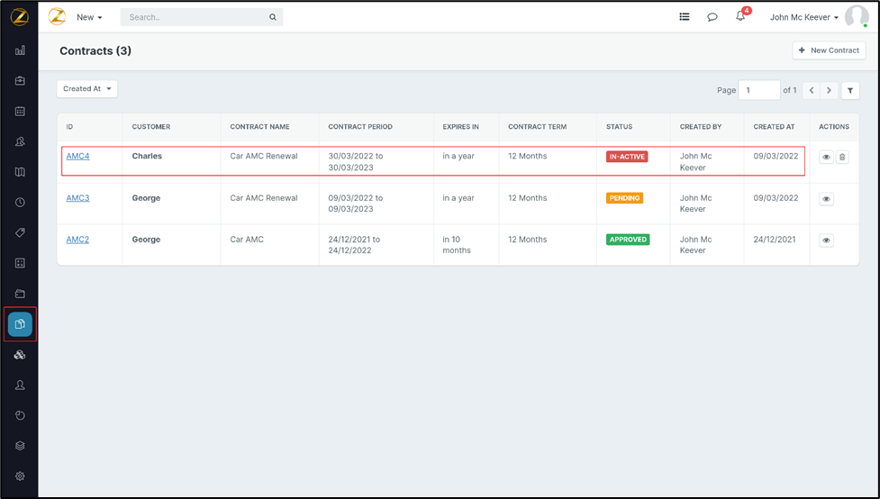 The Contract details page lets you view the complete information of the contract and all its associated records in a single place. From the contract listing page, you can click any one of the contract names to go to the contract details page. ...
