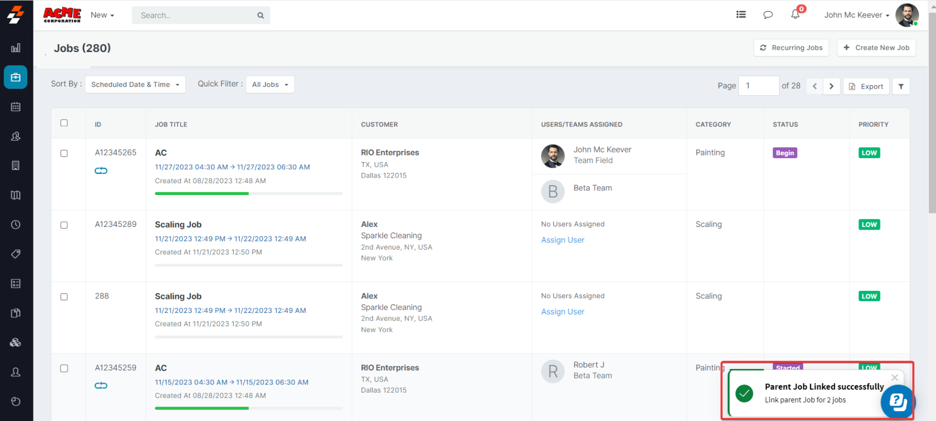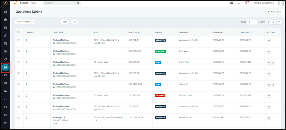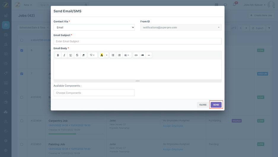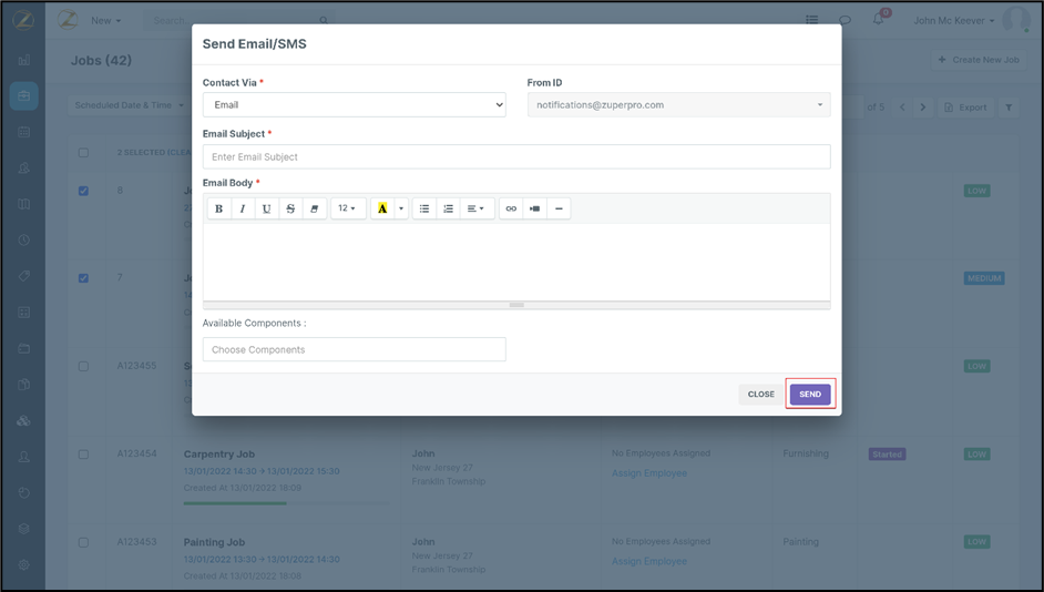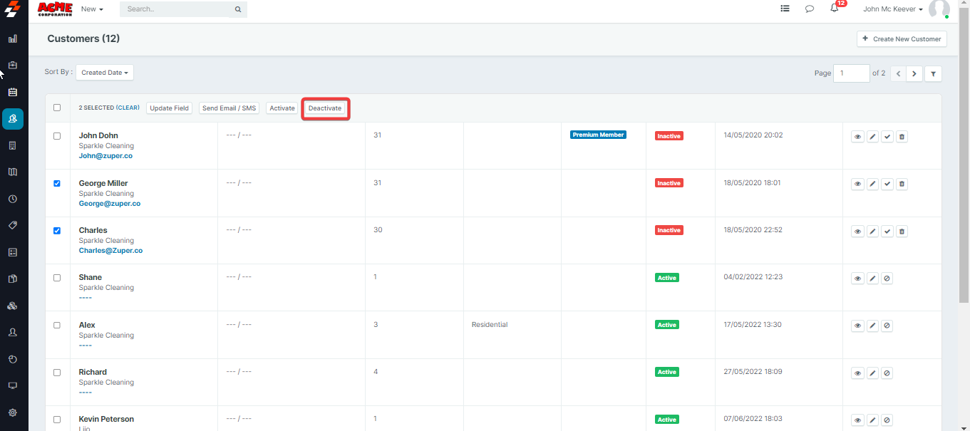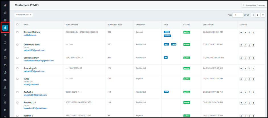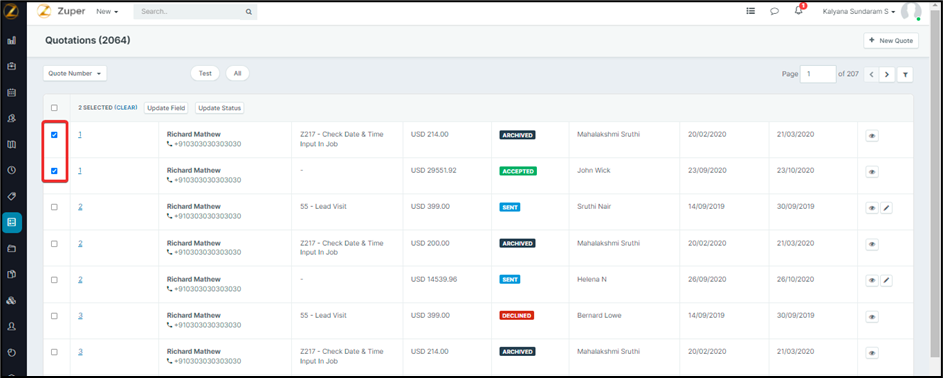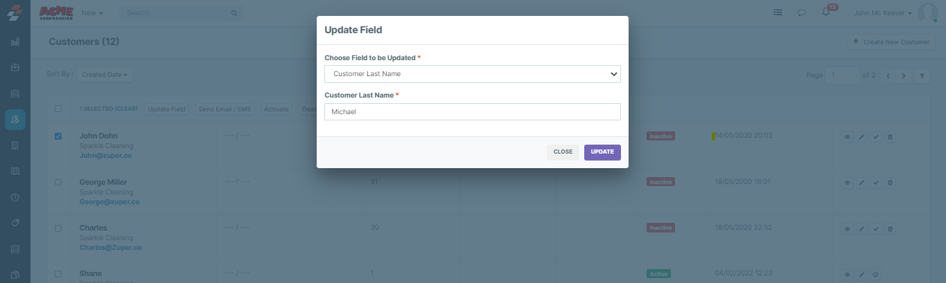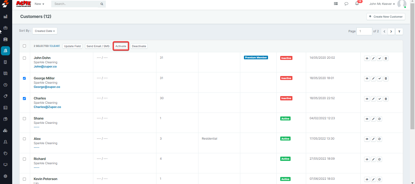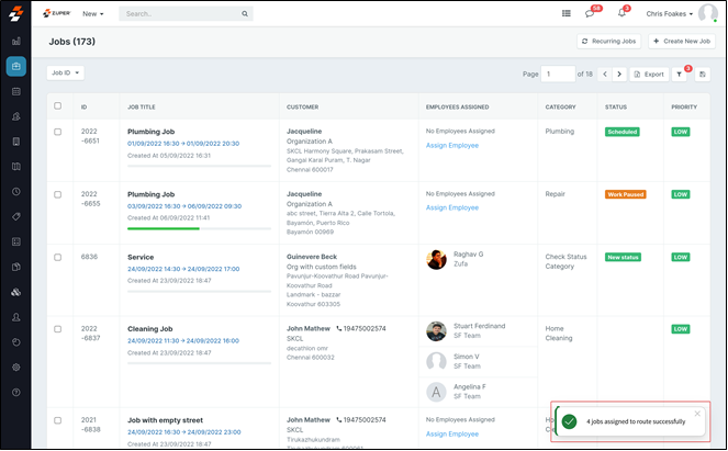 The bulk action on the Jobs, Customers, and Quotes modules helps you to
