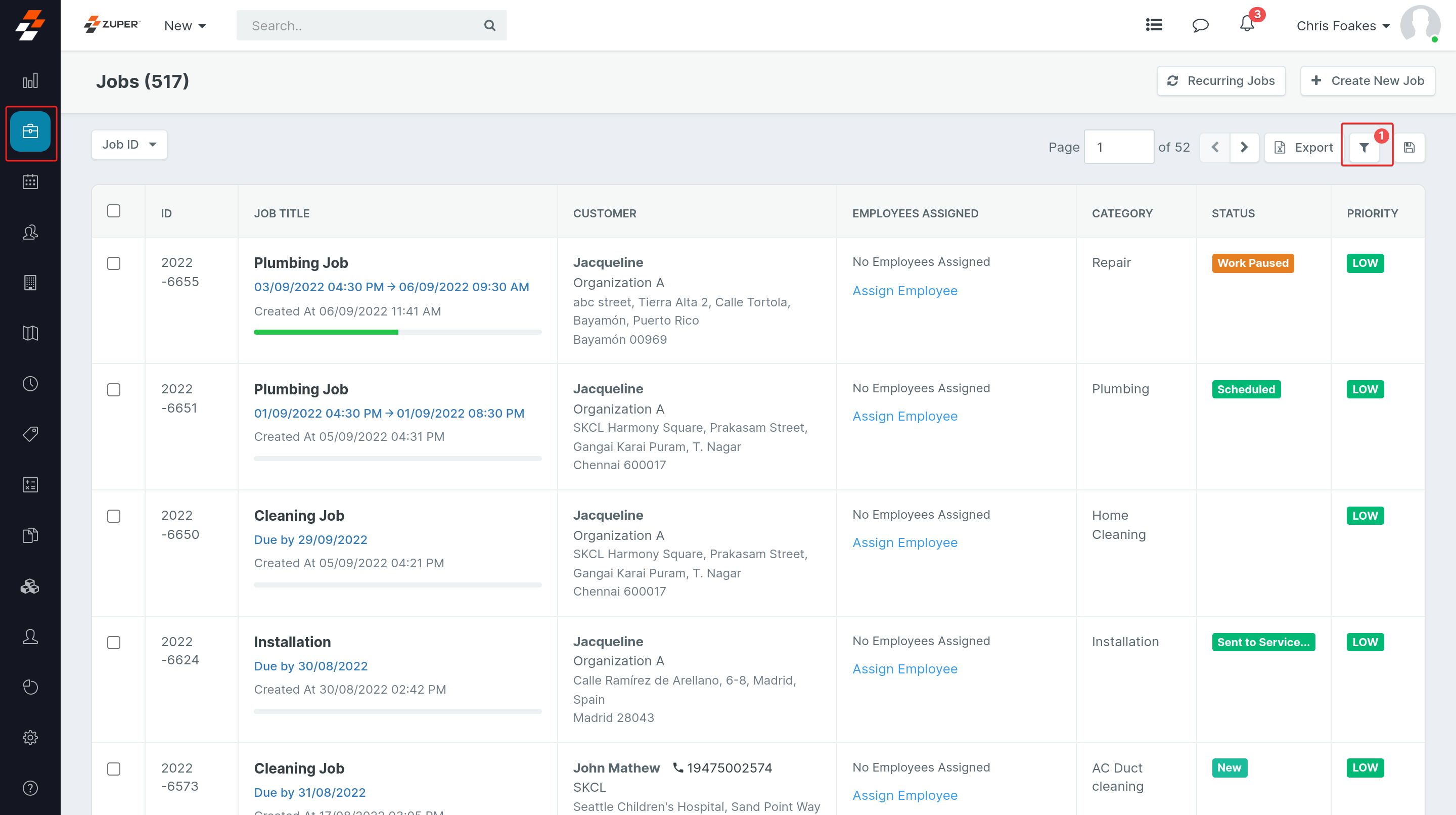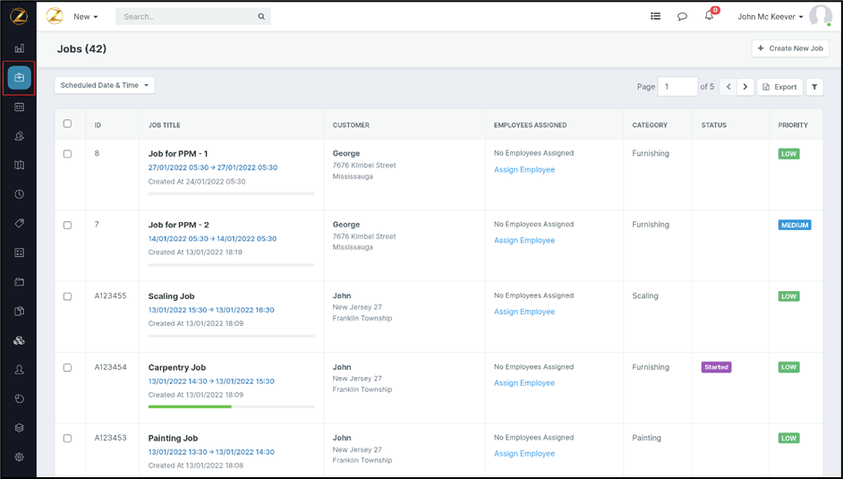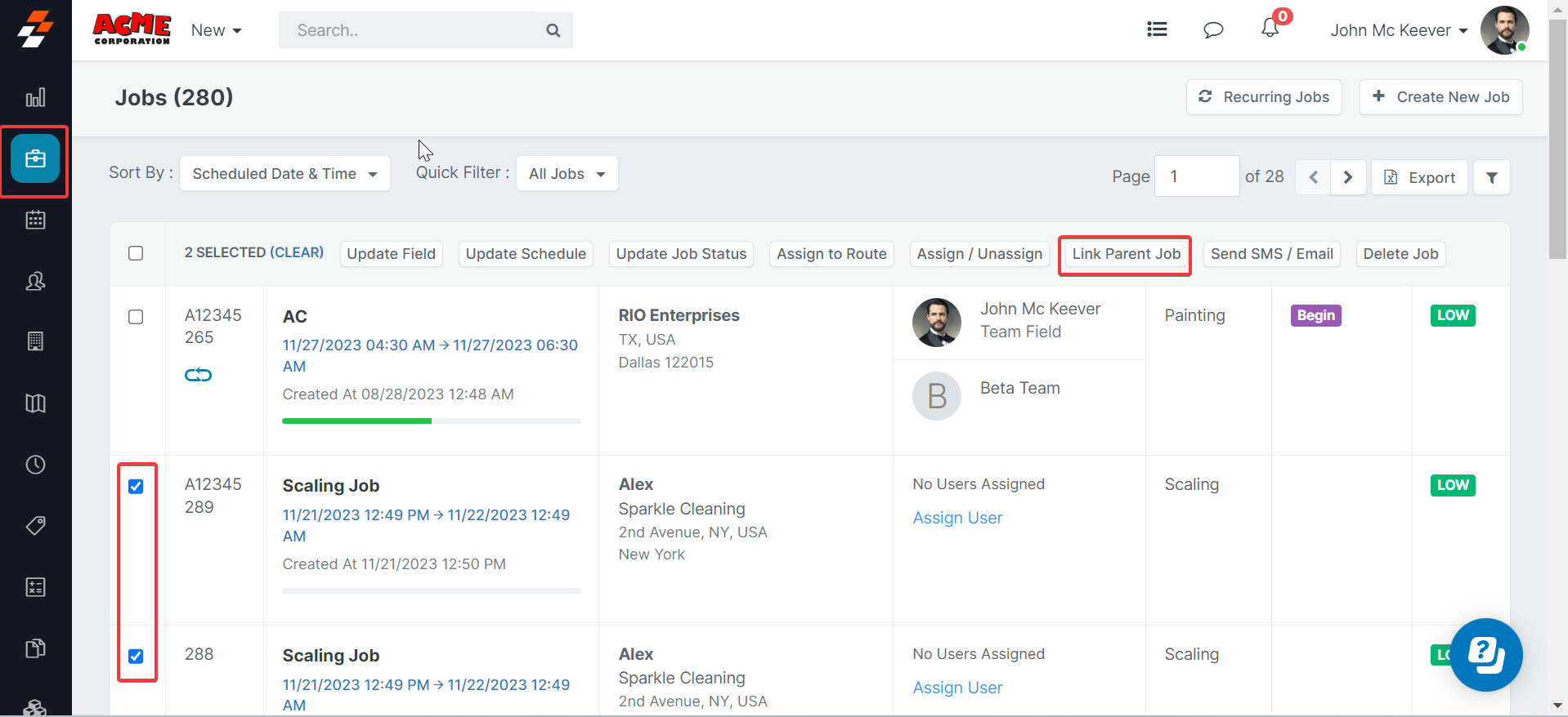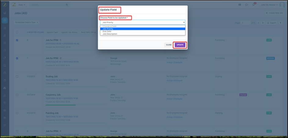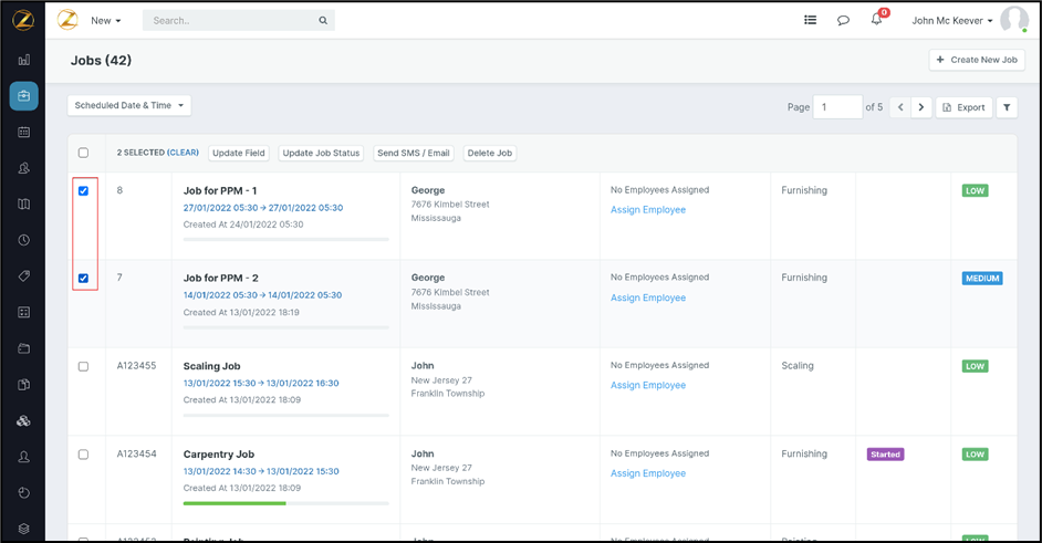 1. Select the “Jobs” icon from the left navigation menu. Mark a checkmark on the Jobs for which you will bulk update.