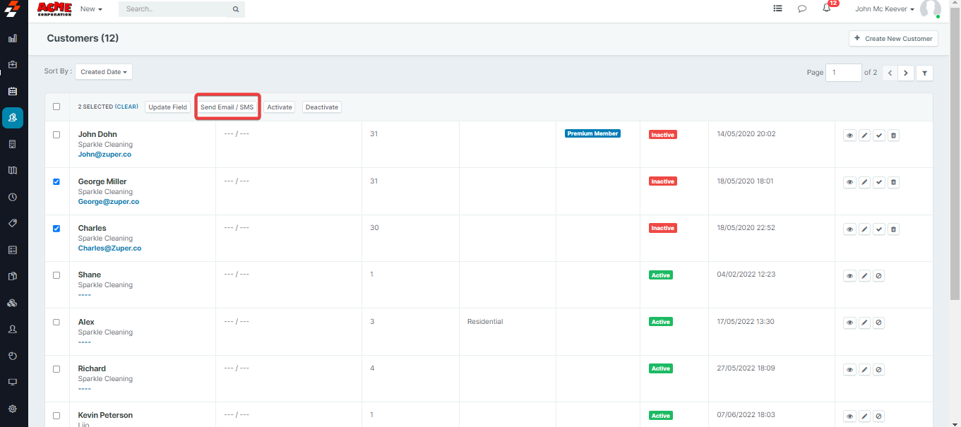 SMS/email from the bulk action section, select the “Send Email / SMS” option