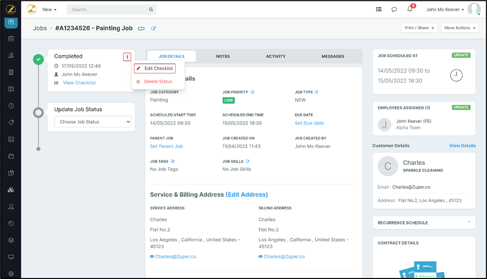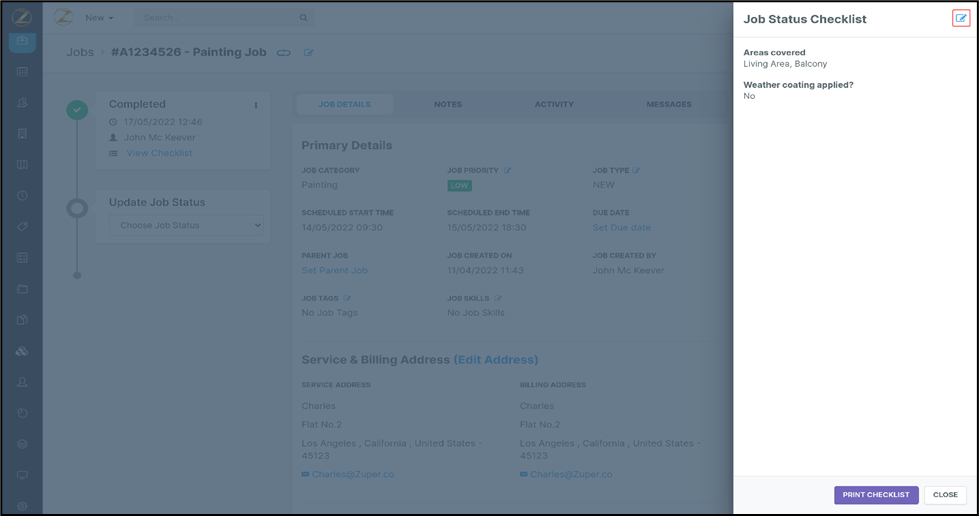 Navigation: Jobs --> Job Details --> Edit Checklist / View Checklist (Edit icon)