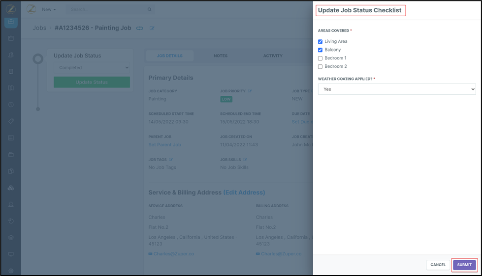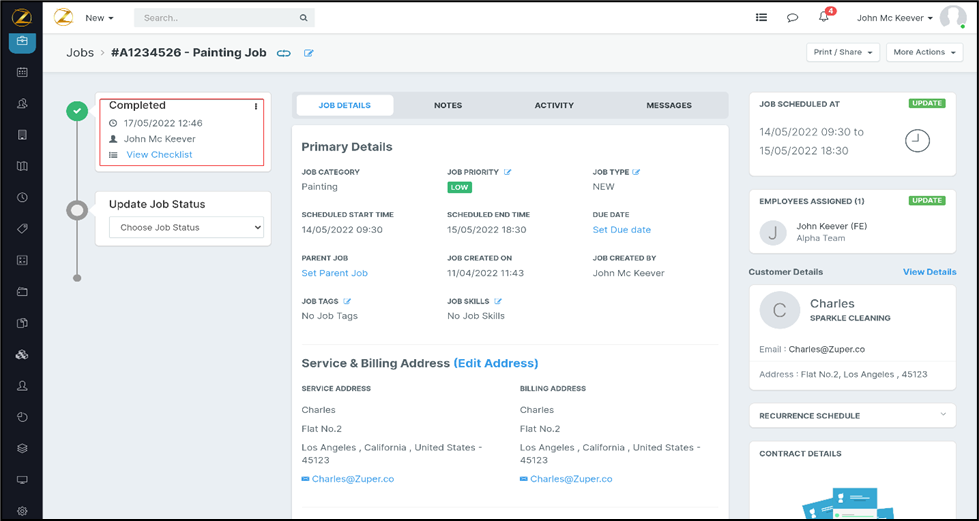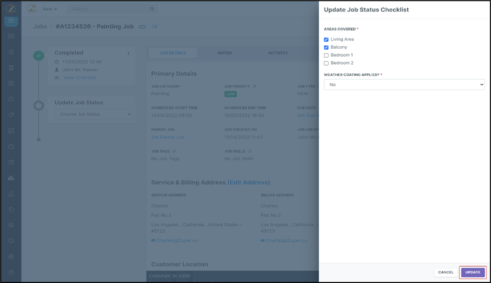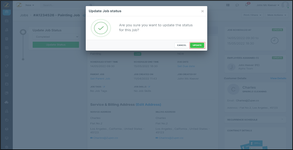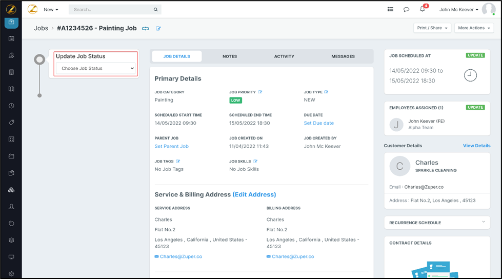 Updating job status is necessary to record the job flow and completion of the service. Job statuses serve as intermediate checkpoints within a job that can be updated by field technicians and other stakeholders, such as administrators, dispatchers, ...