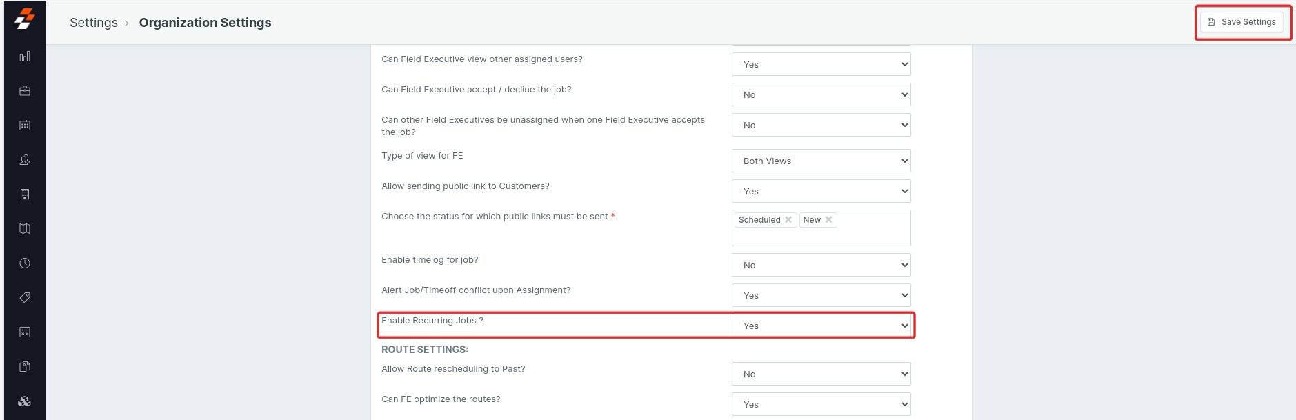 Navigation: Settings --> General Settings --> Organization Settings --> Enable Recurring Jobs