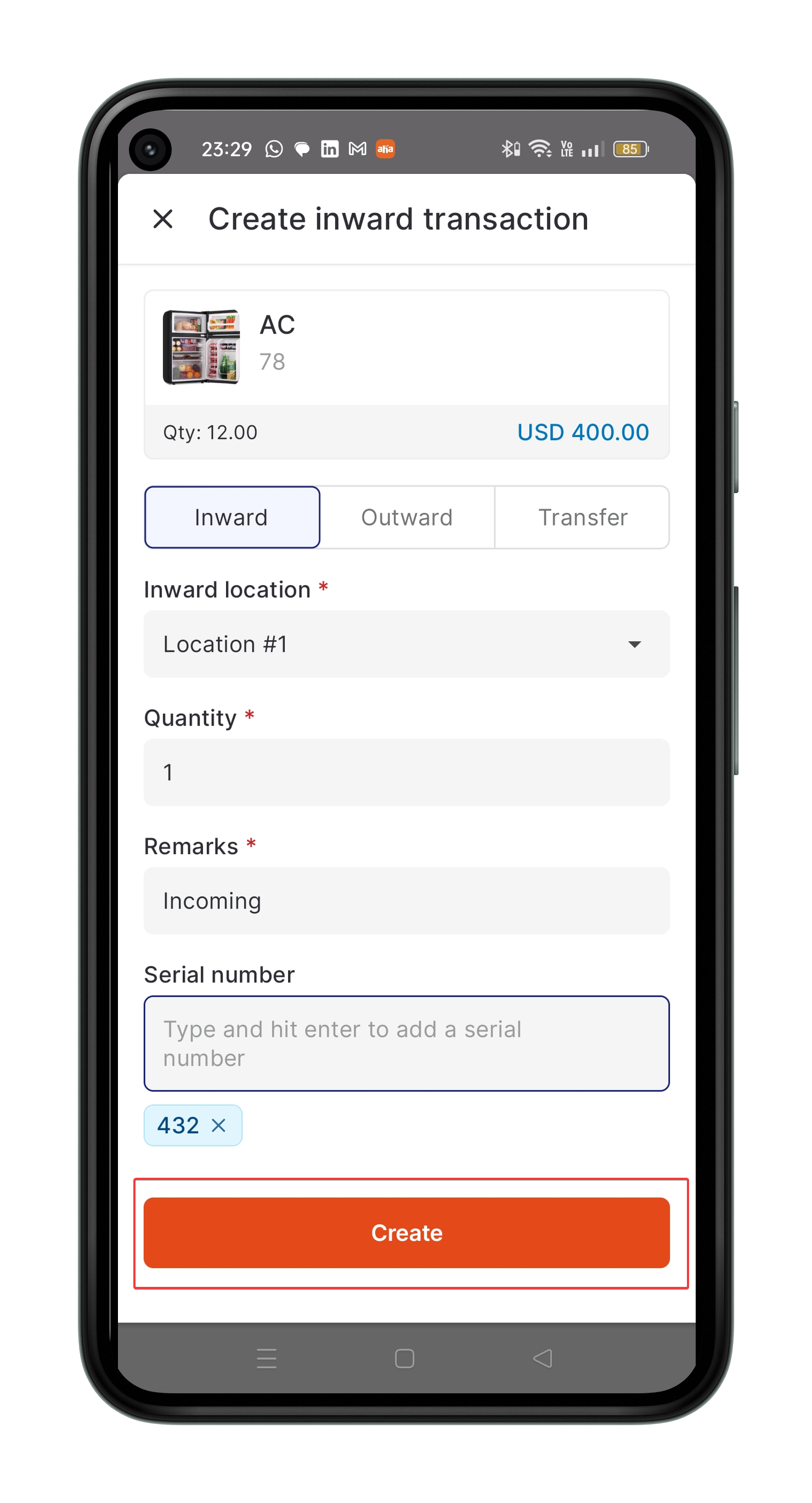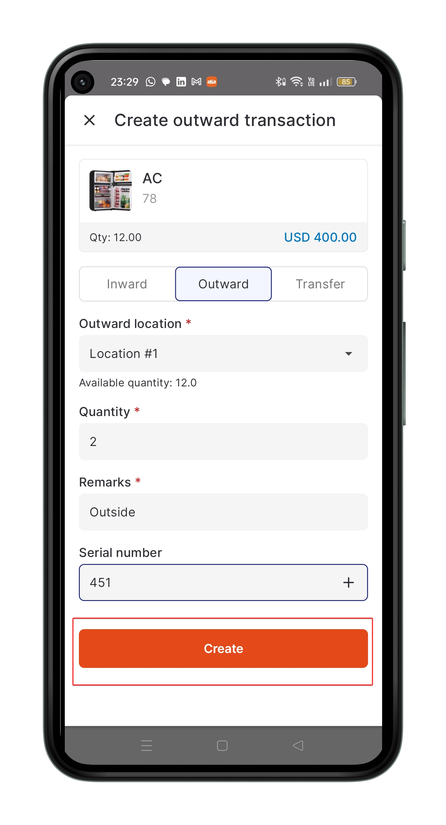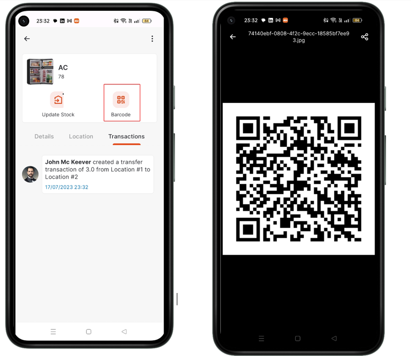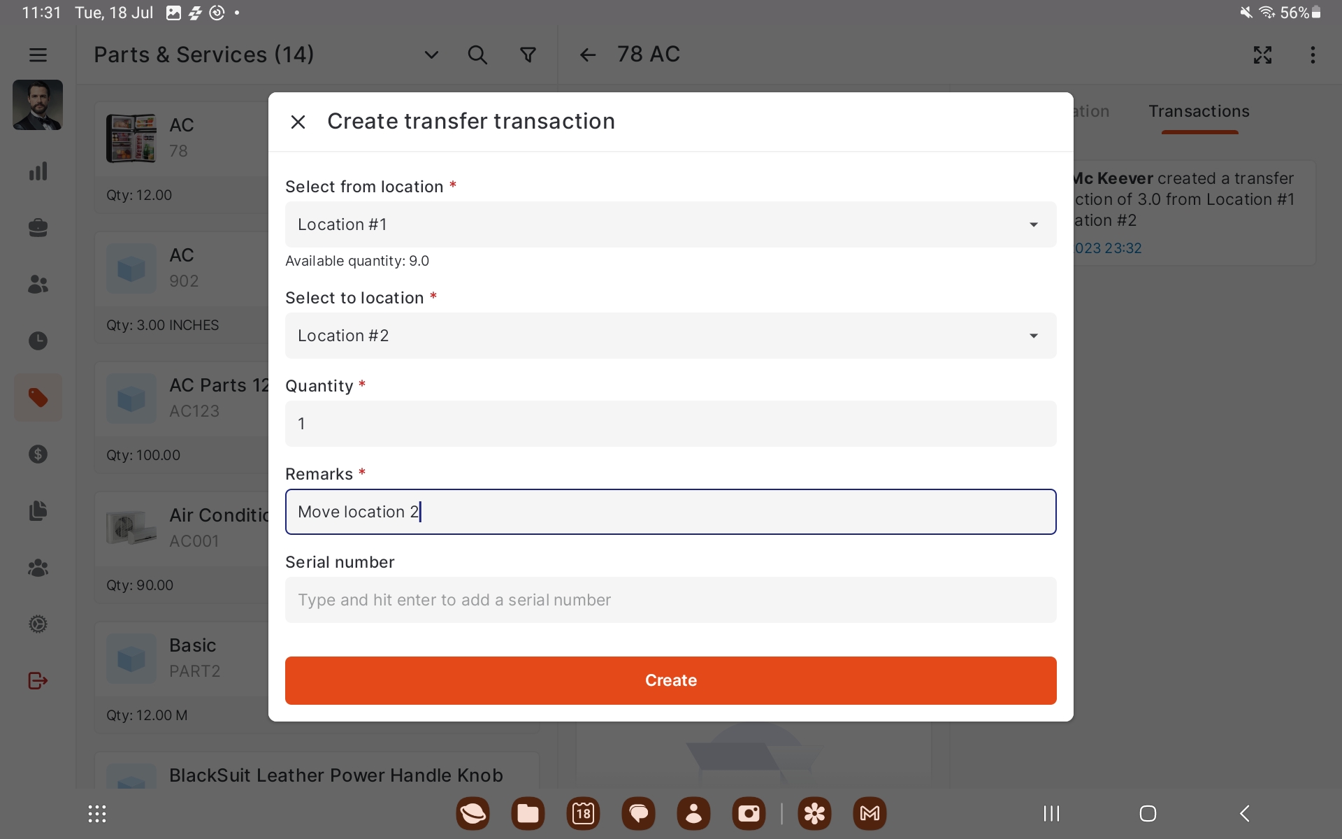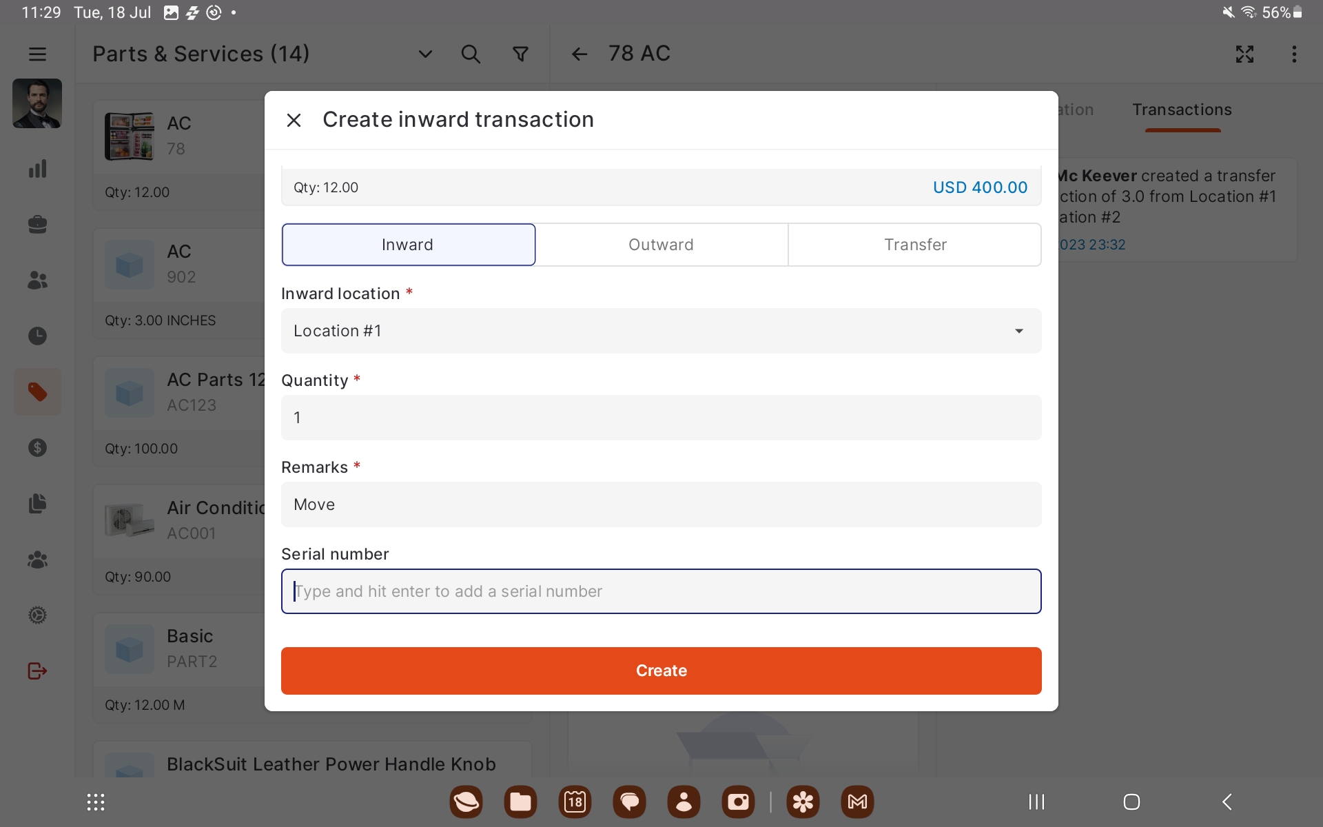 - Transaction: This displays the transaction history of the selected product/part/service.