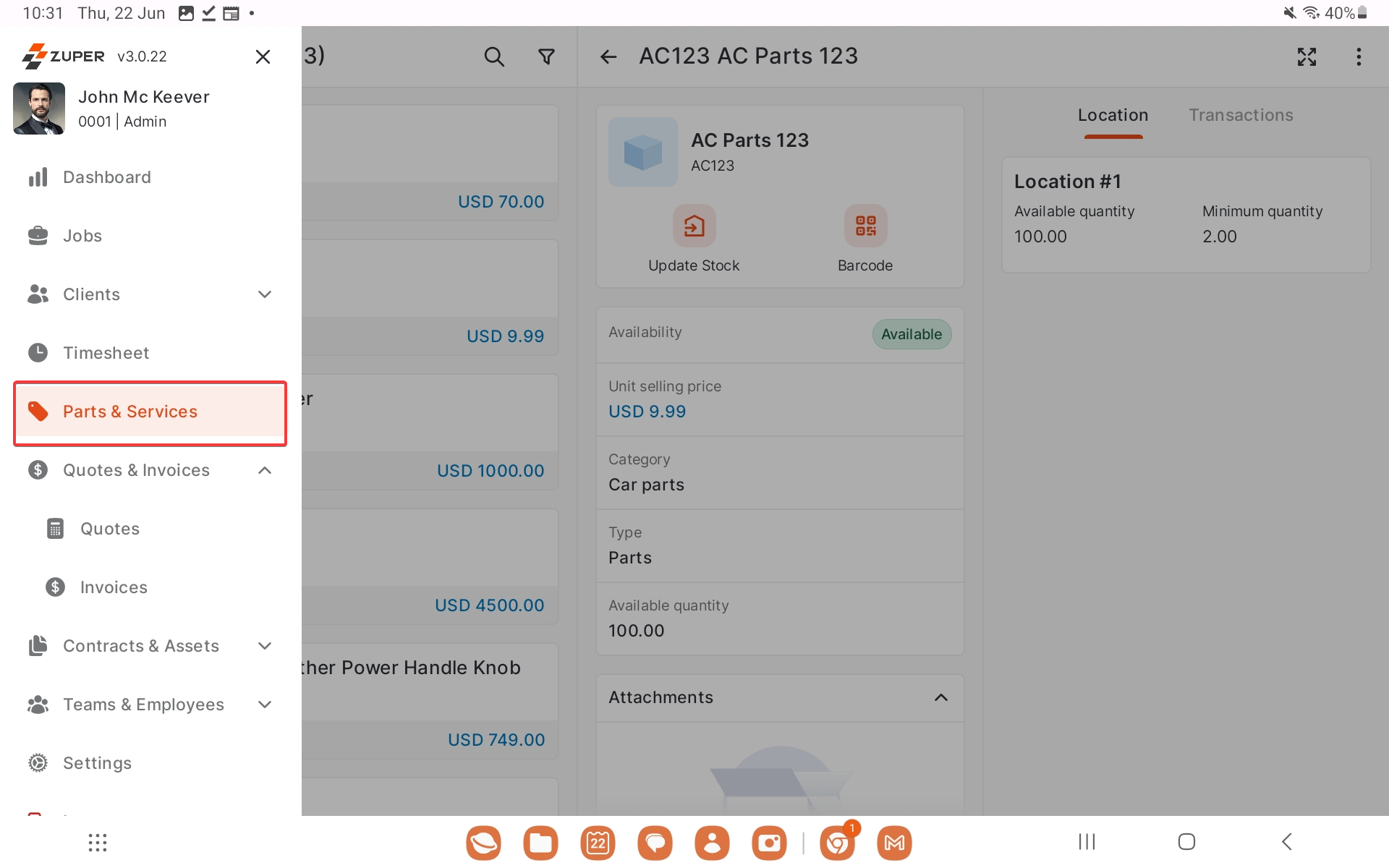 In this article, you will learn how to navigate the parts & service listing and details pages. We'll cover how to view and search for products, apply filters, and sort data, as well as how to efficiently track and manage stock movements across different locations. Whether you're using the mobile or tablet version, this article will help you maximize Zuper's features to enhance your parts and service management process.