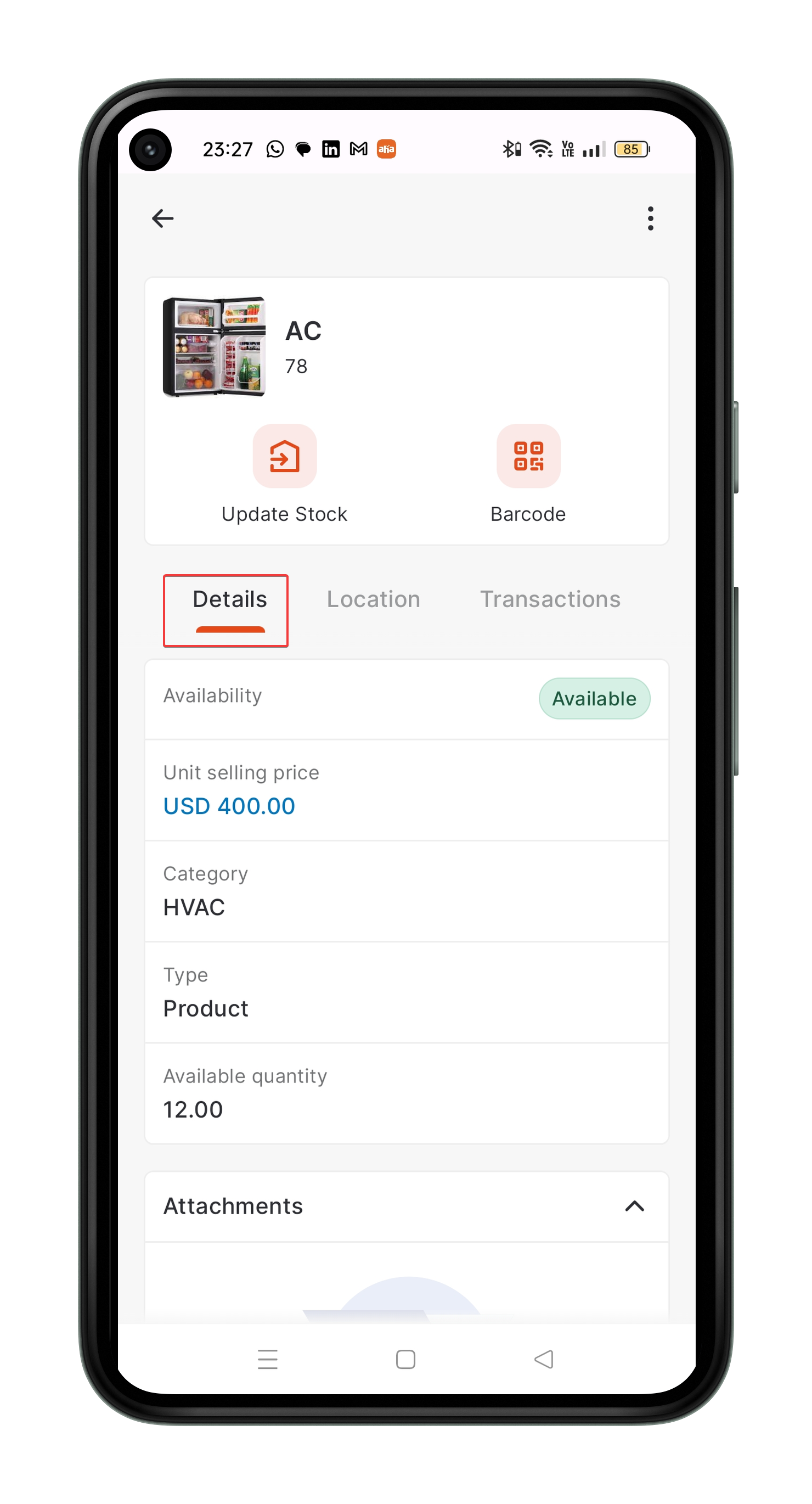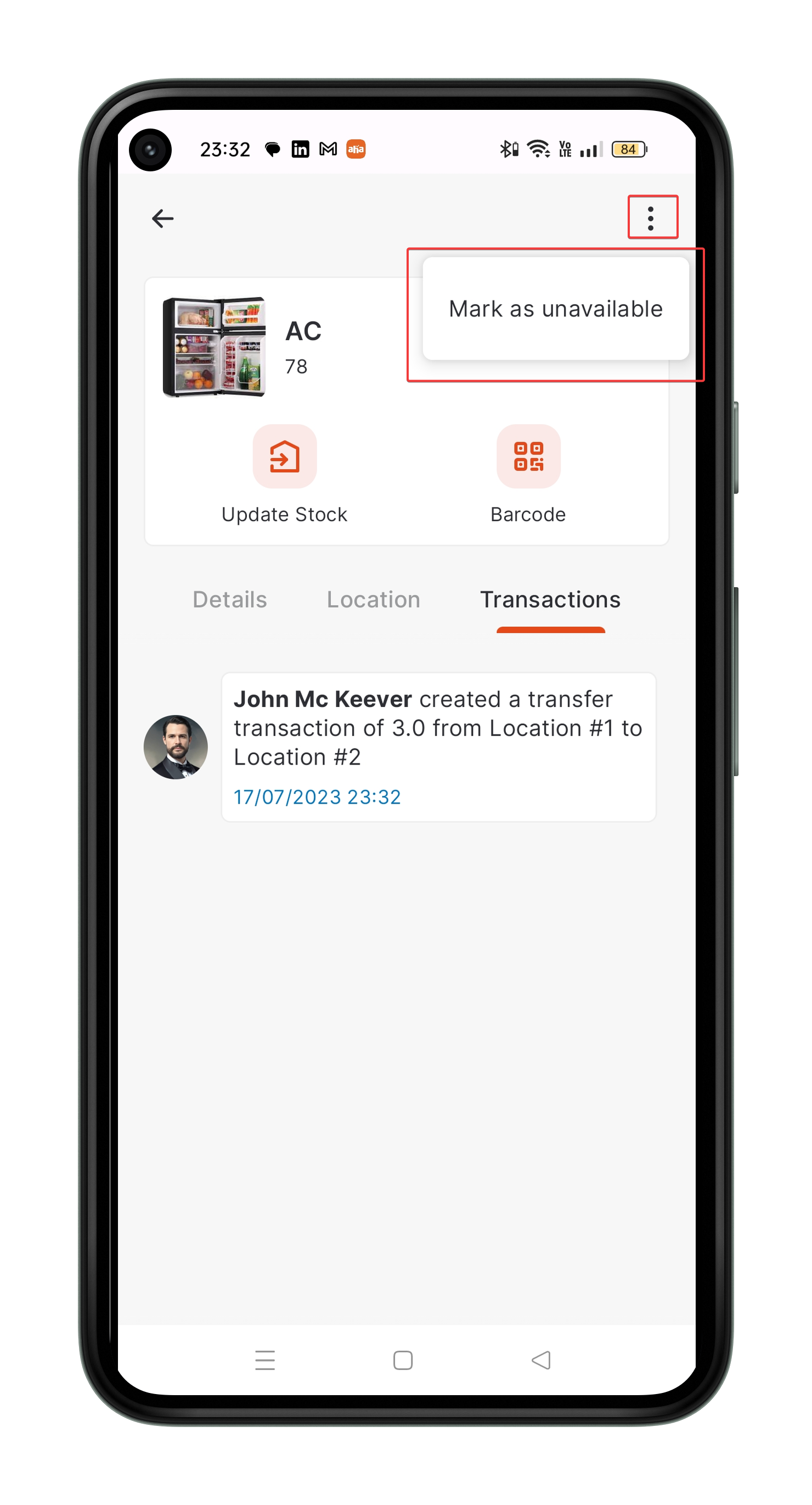 4. You can also mark the product as available/unavailable by selecting the "kebab" icon at the top right corner of the screen.
