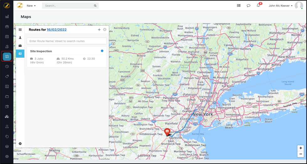 The total number of jobs are displayed on the Route page