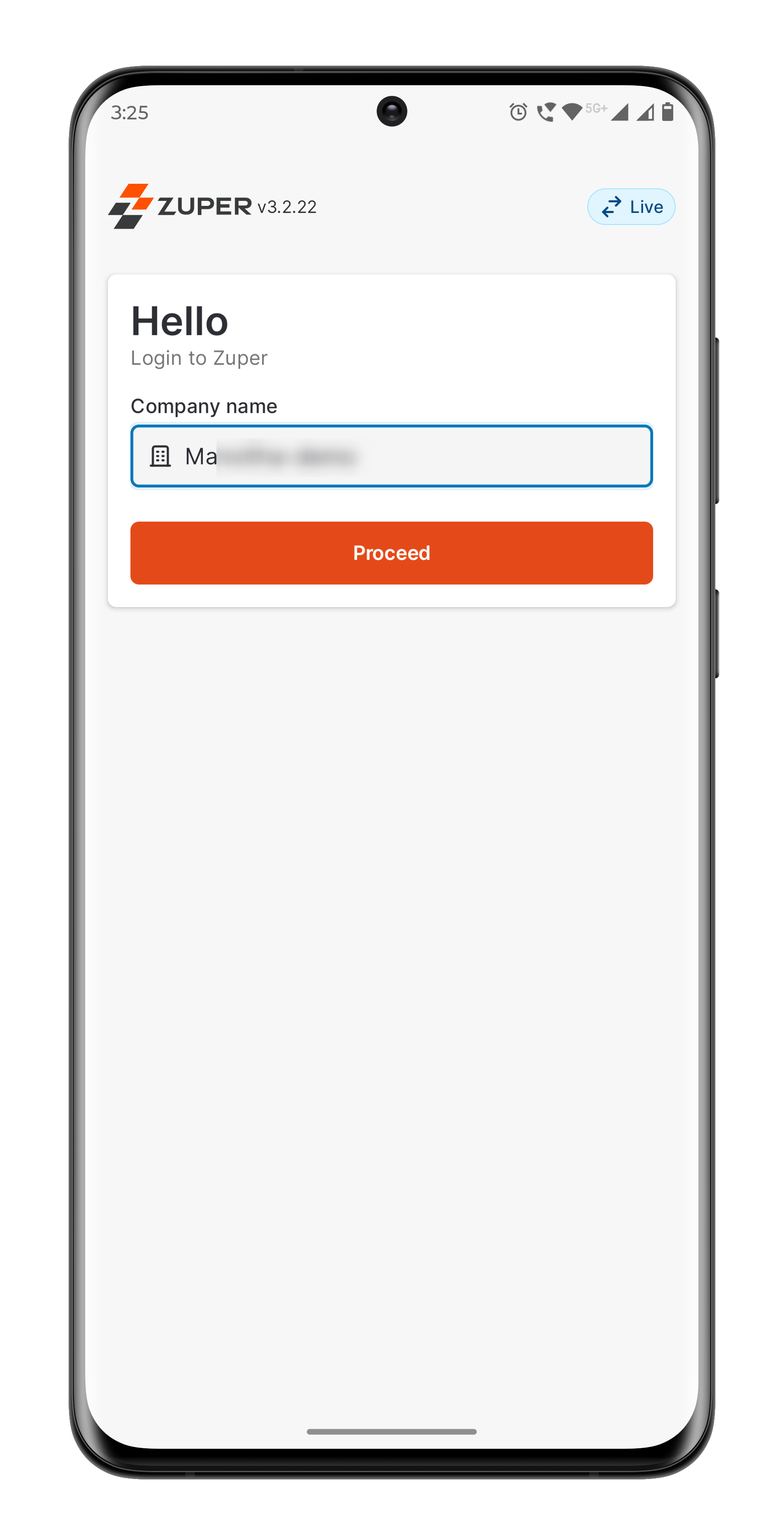 4. Once installed, open the app and enter your "Company Name" to proceed.