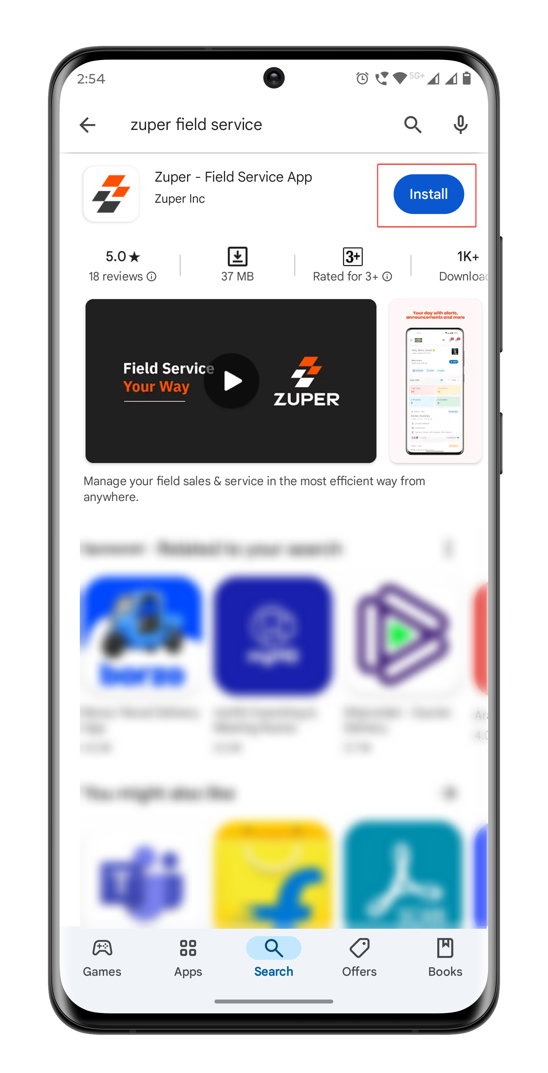 2. Search for "Zuper- Field Service App" and select it from the results.