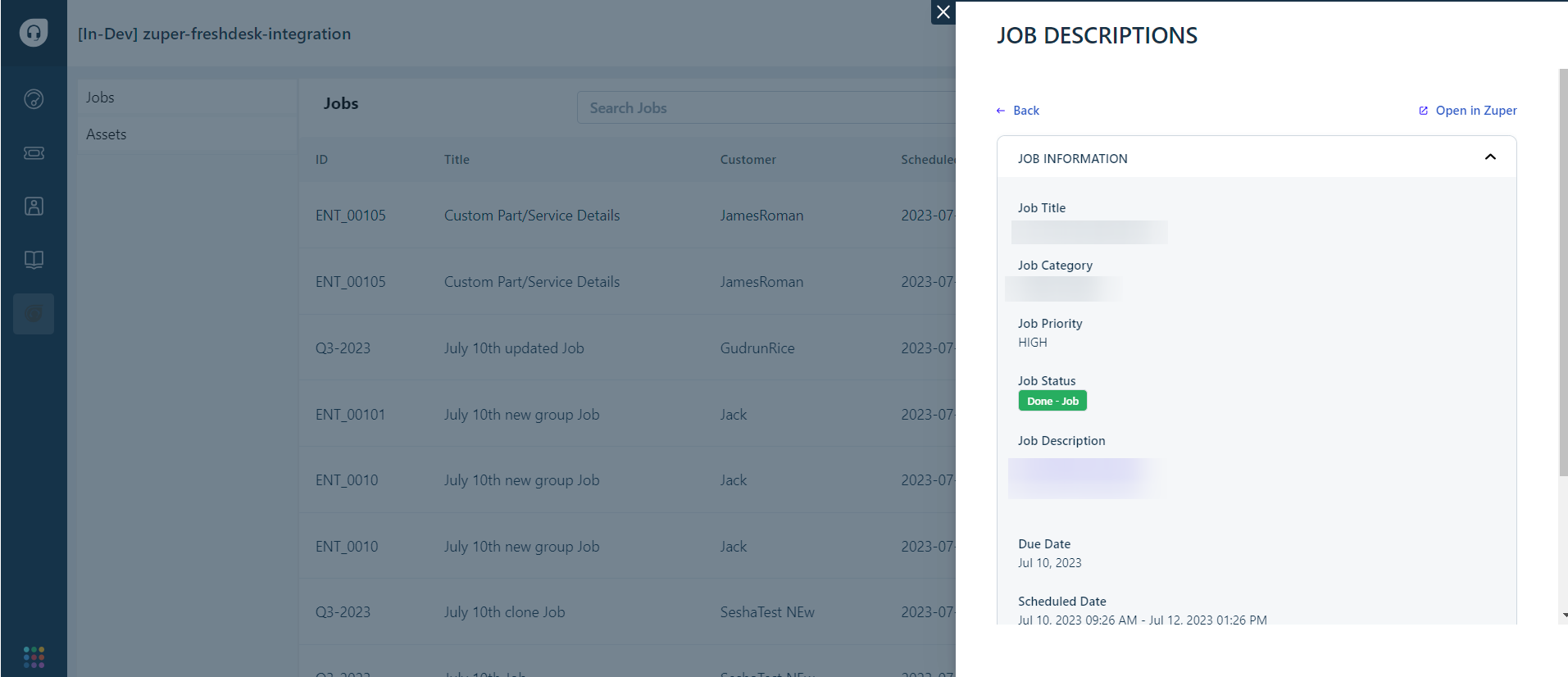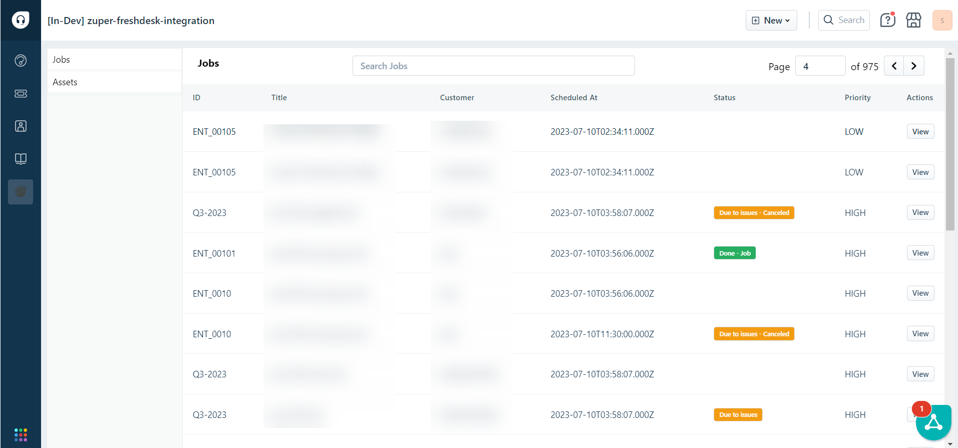 7. You can view the list of Jobs created using Zuper-Freshdesk integration and also you can view all jobs in the associated Zuper account can be viewed.