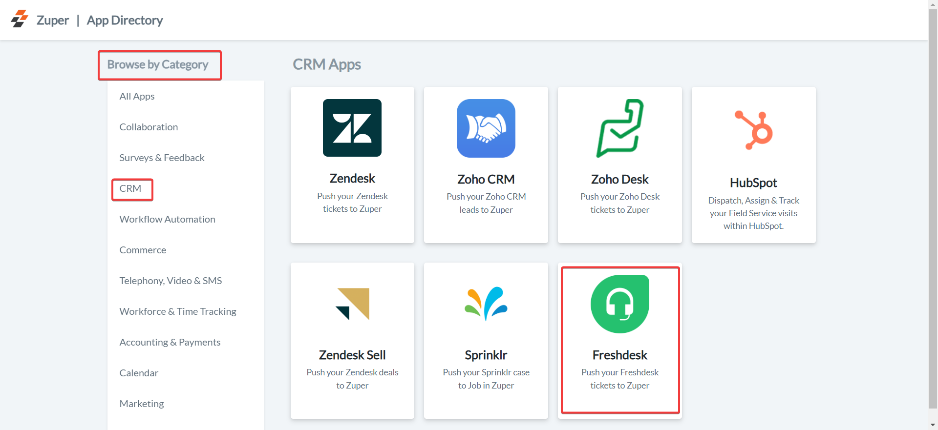 2. Under the “Browse by Category,” select the “CRM” option and choose “Freshdesk.”