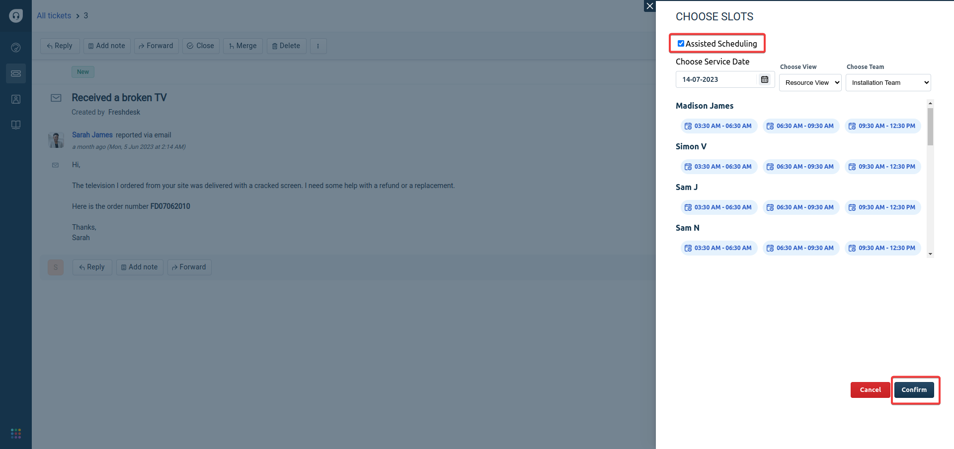 3. Use the "Assisted Scheduling" feature to choose the slots and click the "Confirm" button.