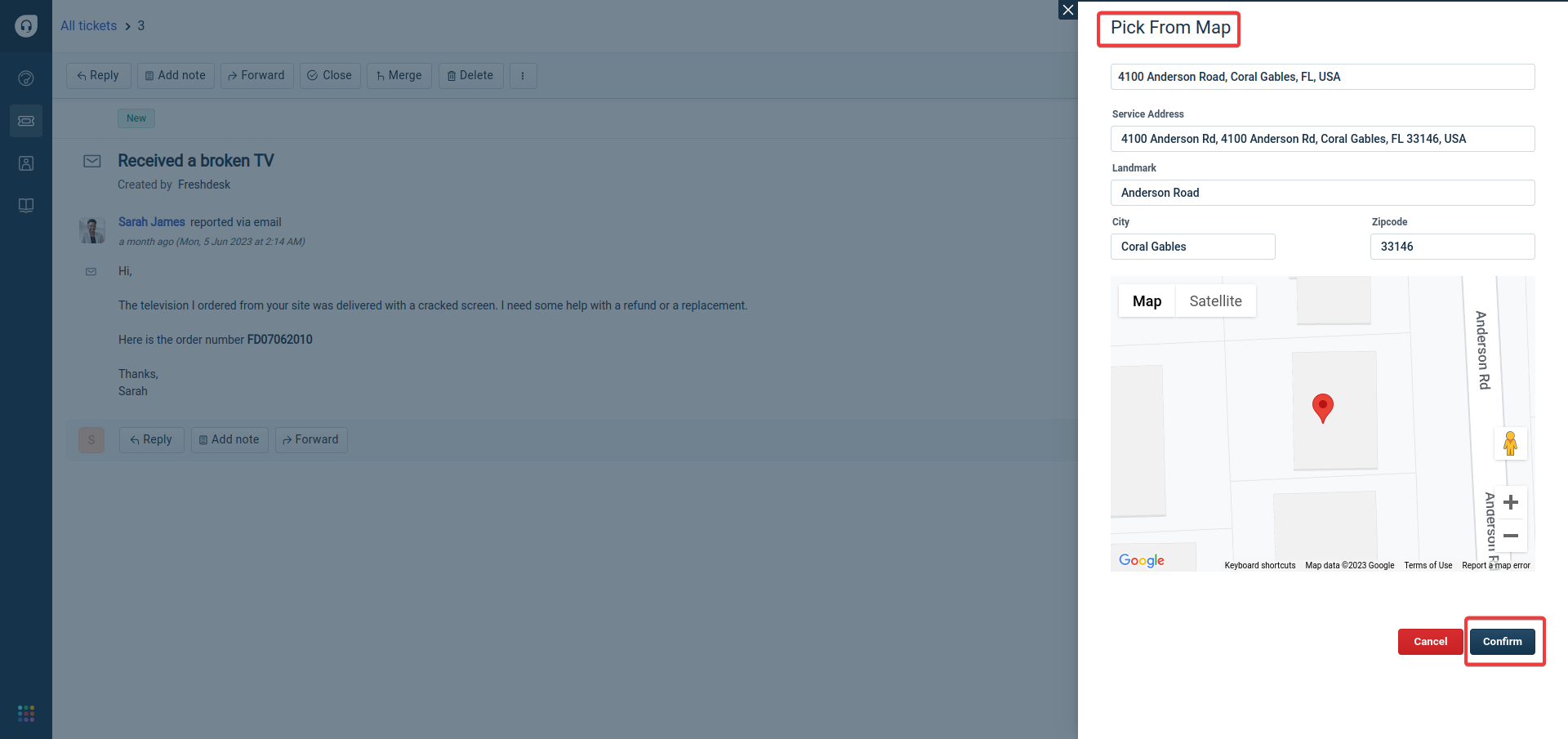 5. Use the "Pick From Map" option to capture the exact customer address with proper geo-co-ordinates.
