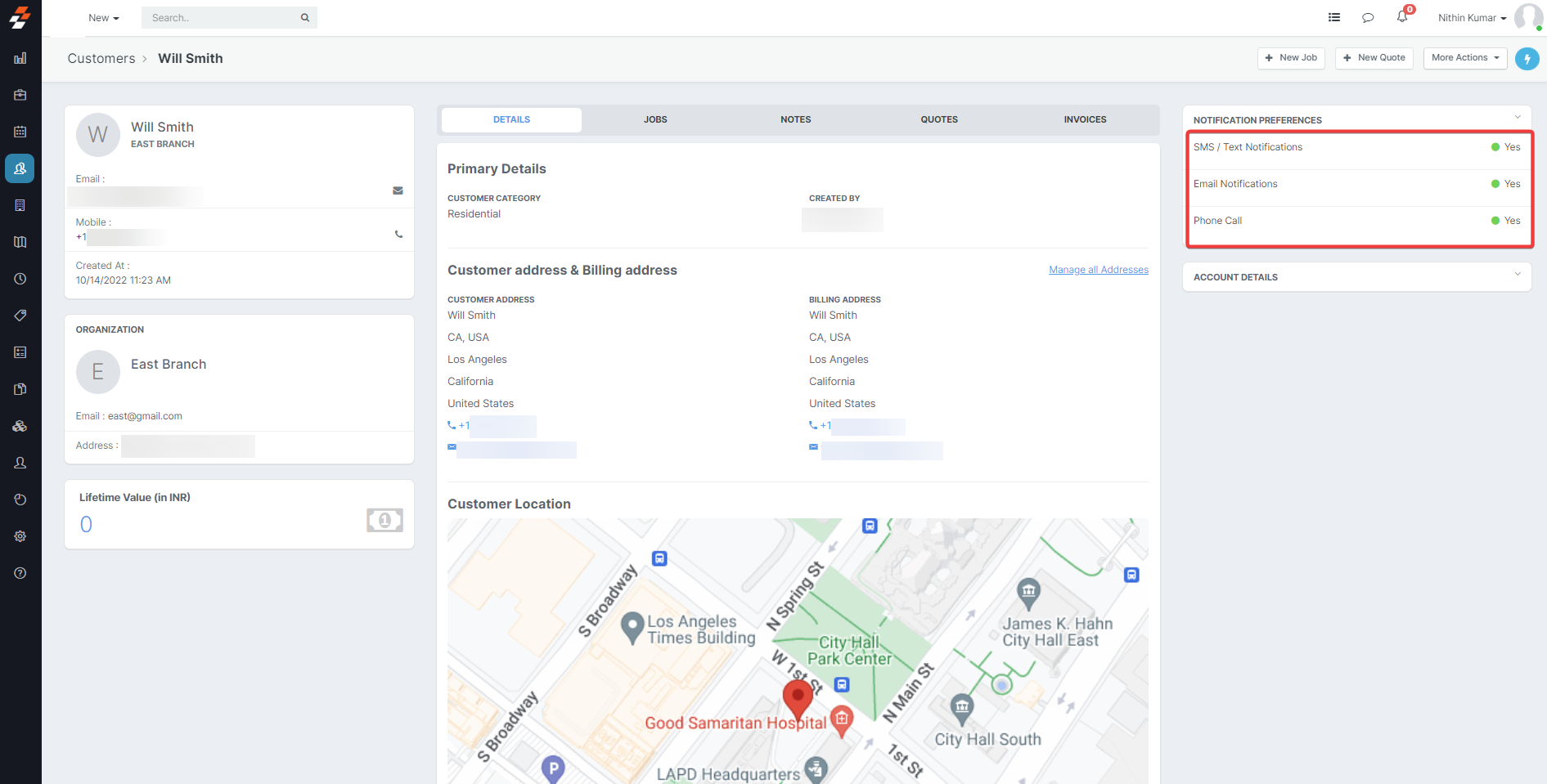 Select the “Customer” module from the left panel and choose the Customer you want to notify.