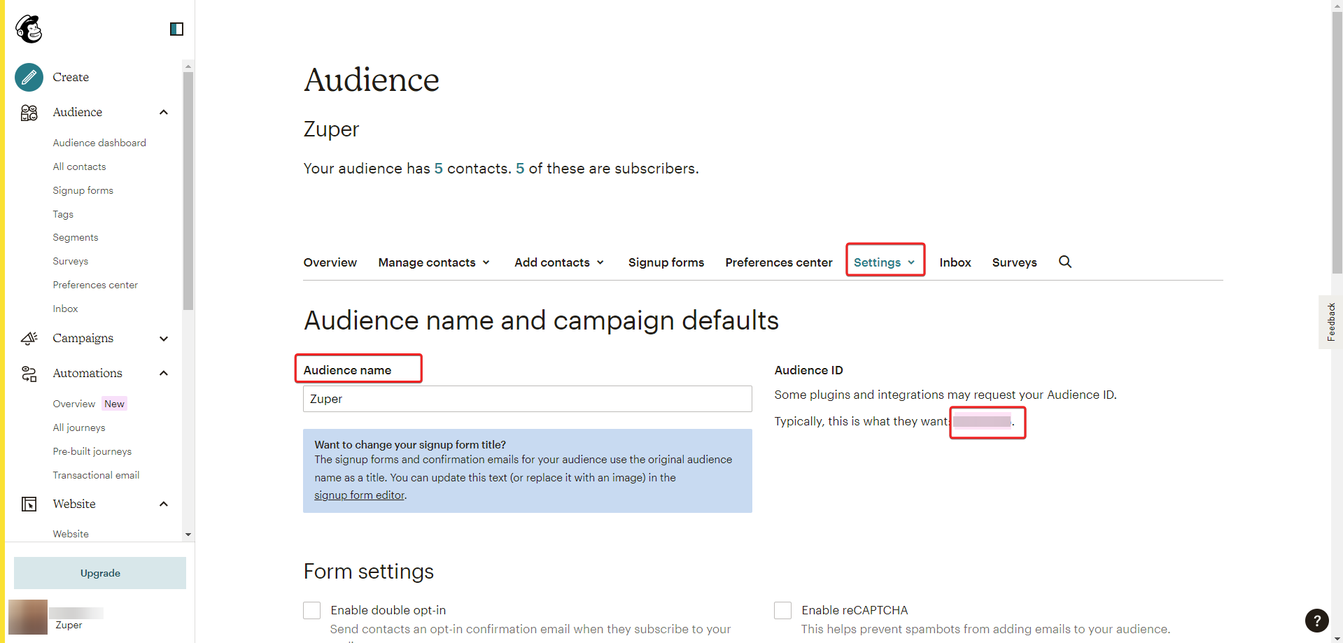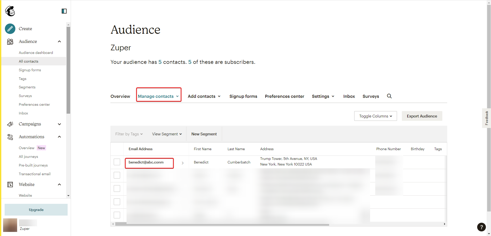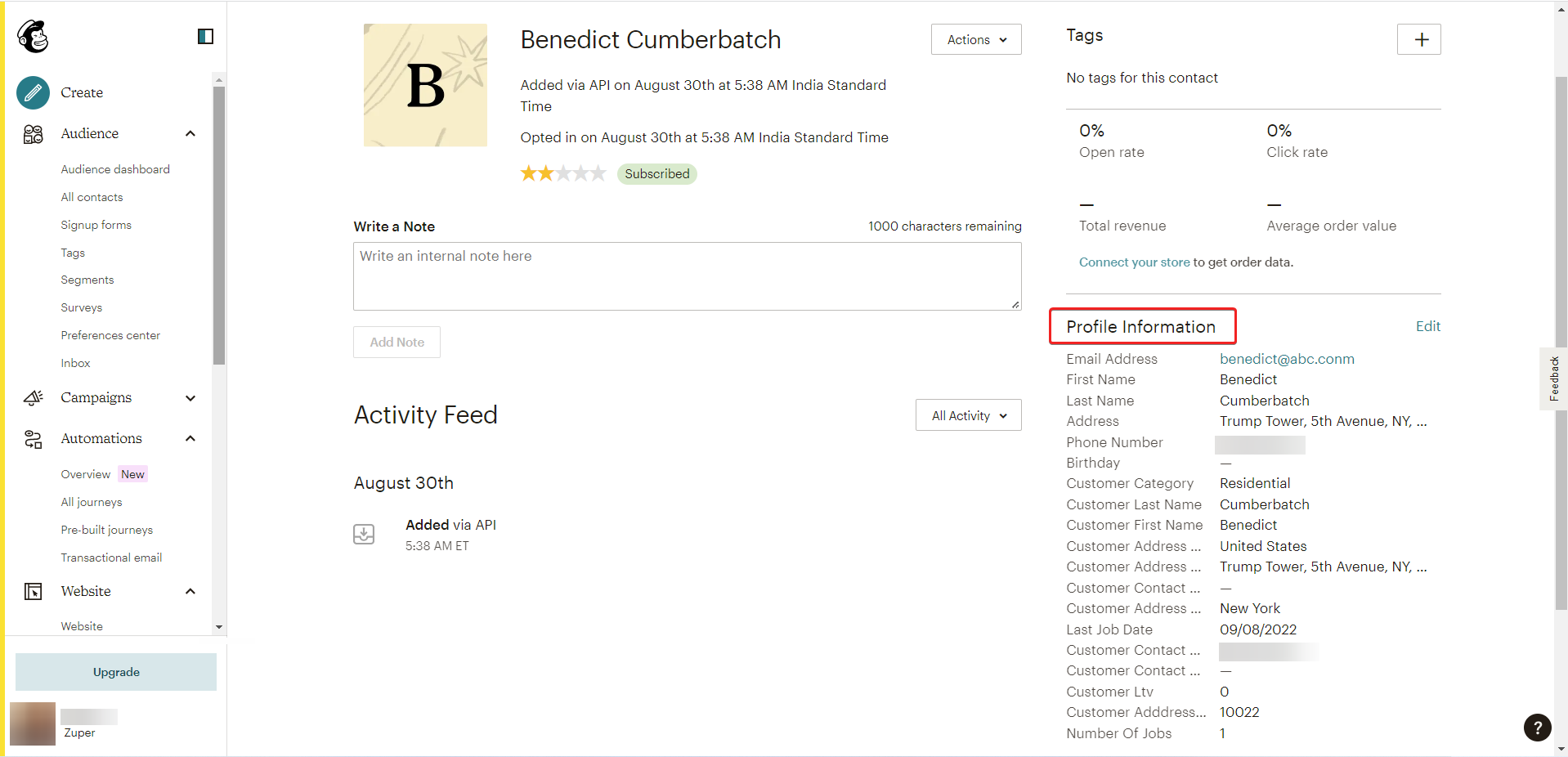 You can view the newly created Customer from Zuper pushed as an “Audience” in Mailchimp.