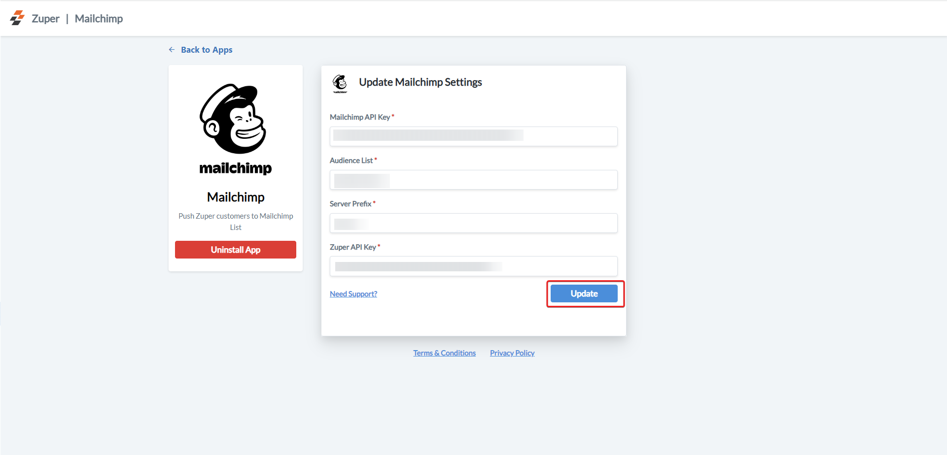 information recorded in the Zuper platform. This helps users to use Mailchimp