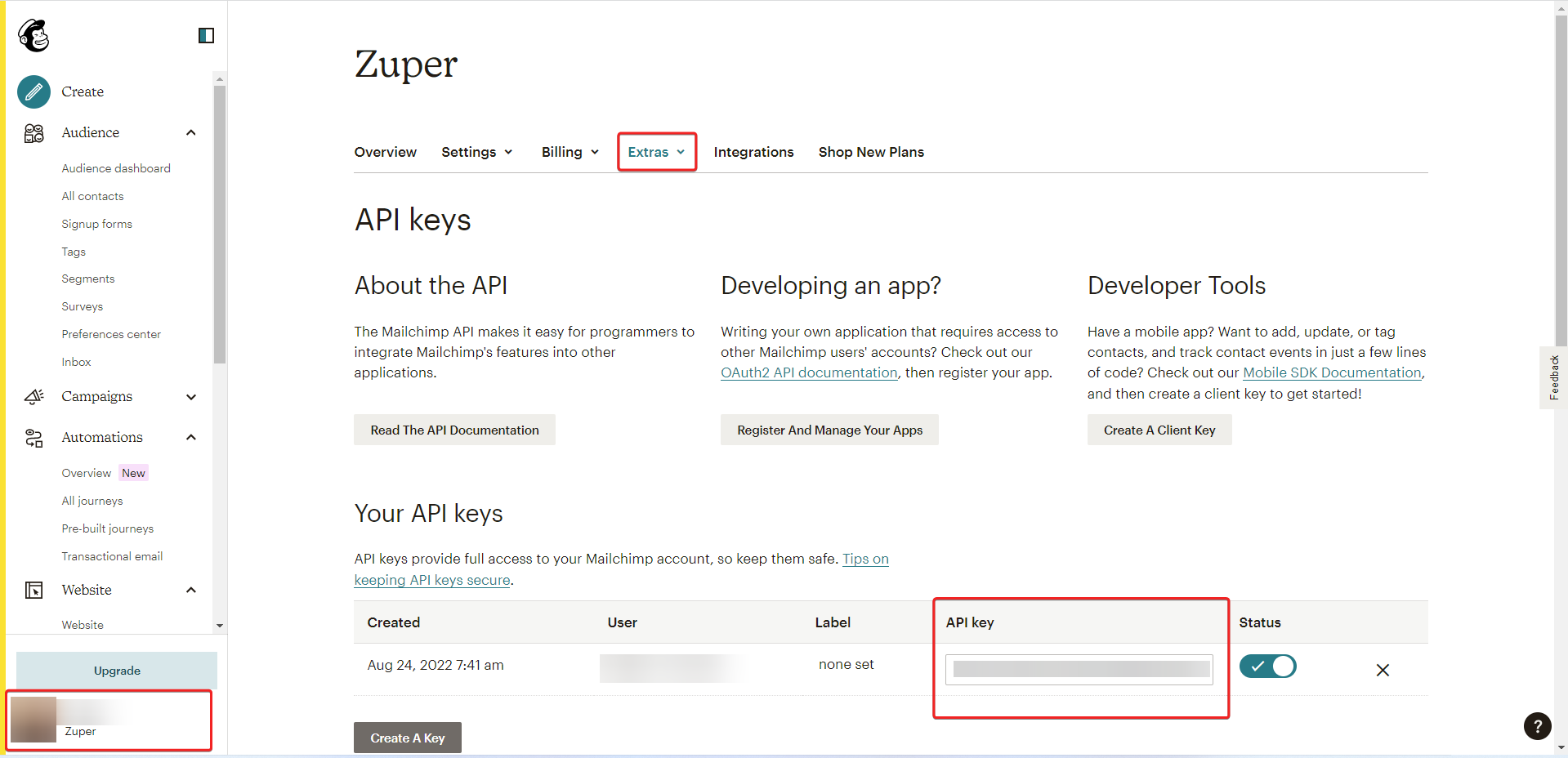 keep Zuper and Mailchimp tabs open. You can switch between the tabs for