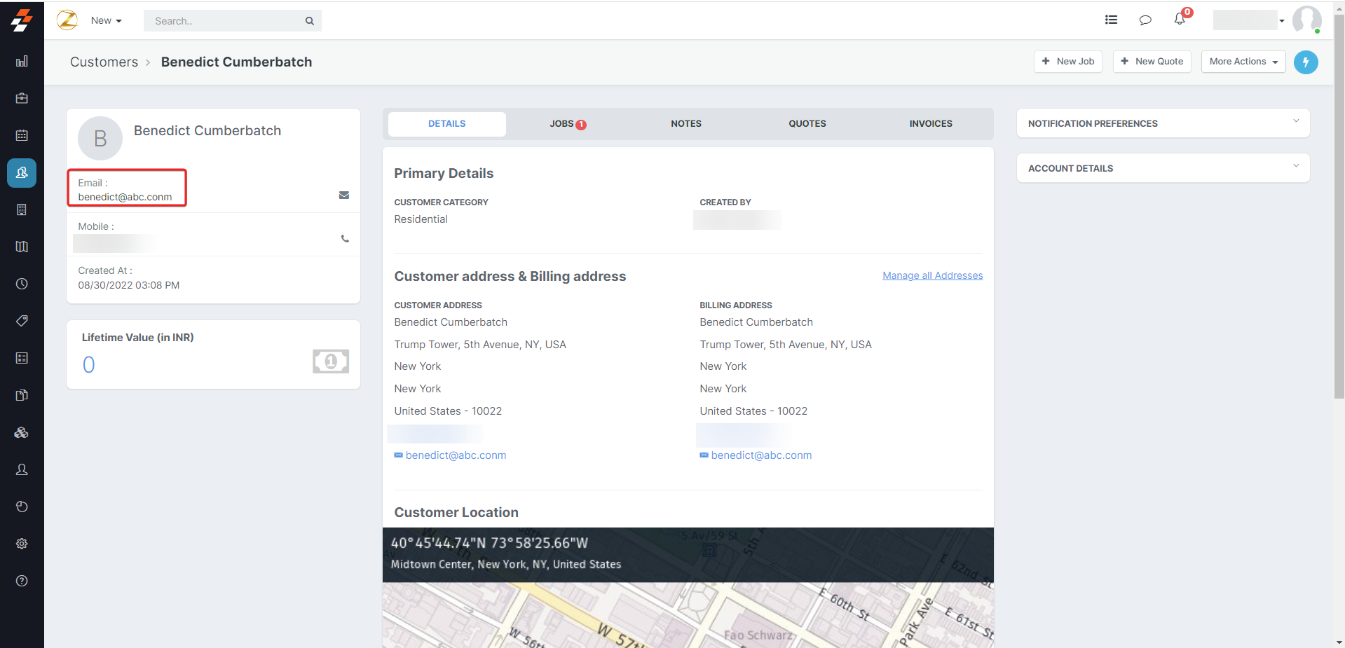 customer creation in Zuper, it needs to be updated. If the email ID is edited,