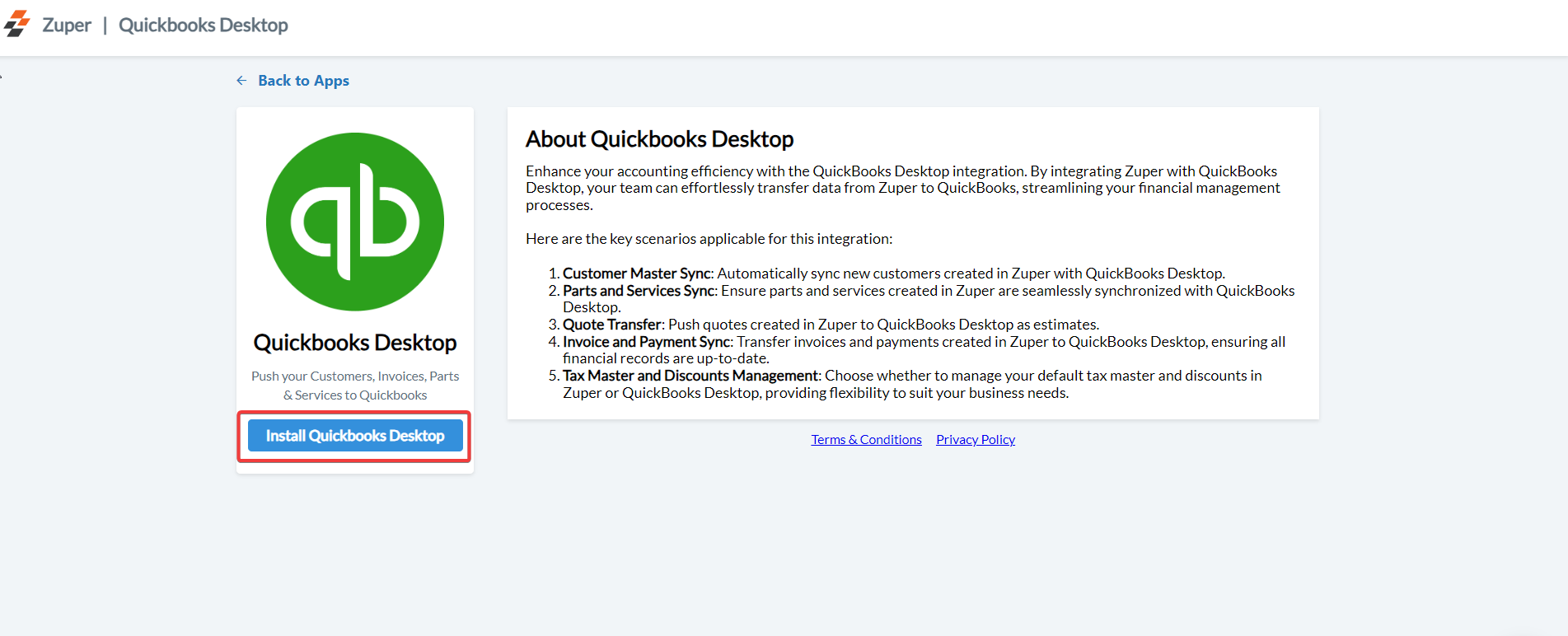 - The QuickBooks integration helps us push data from Zuper, such as Customers, Parts and services, Quotes, Invoices, and Payments, to QuickBooks.