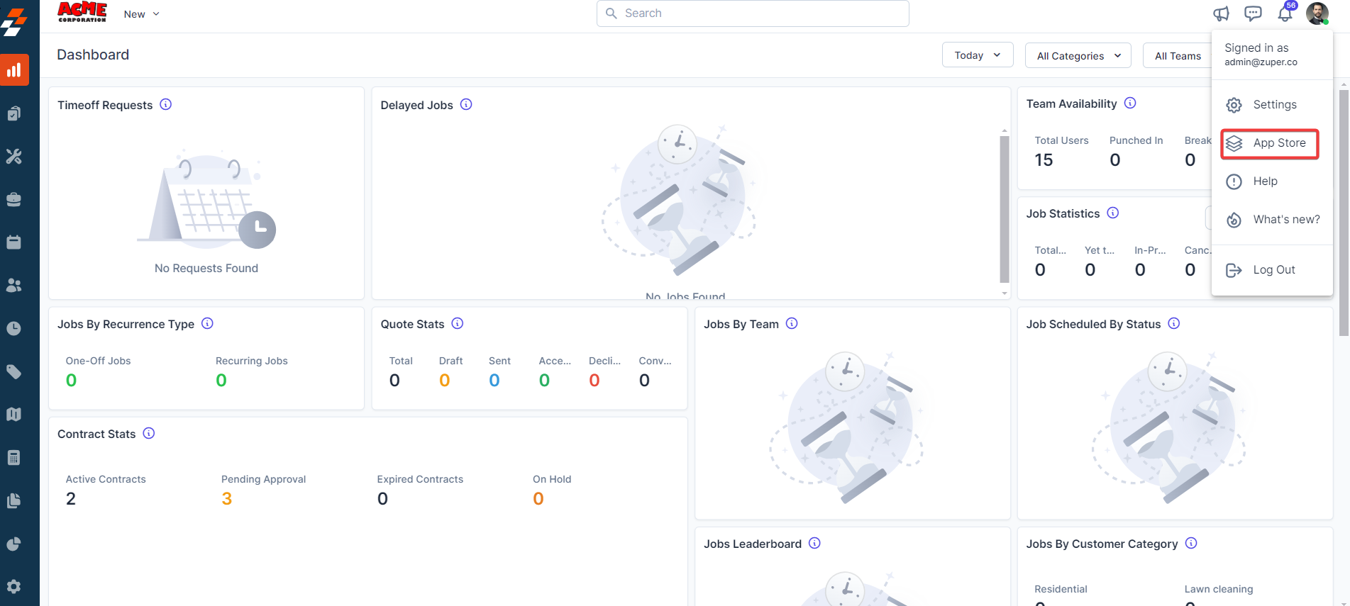 1. Open a new tab in your browser once logged in to your Zuper Account.