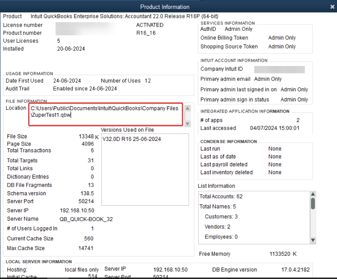 should be taken from QuickBooks. In QuickBooks Desktop, Press Fn+F2 to get the