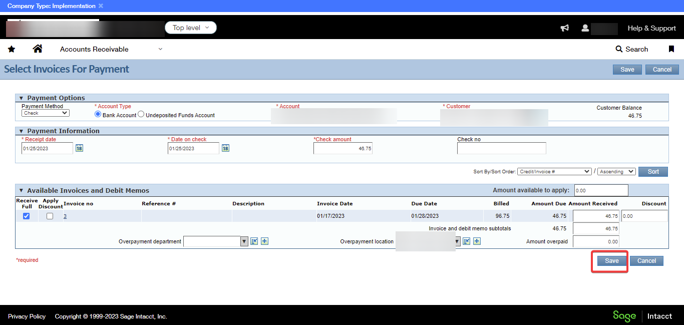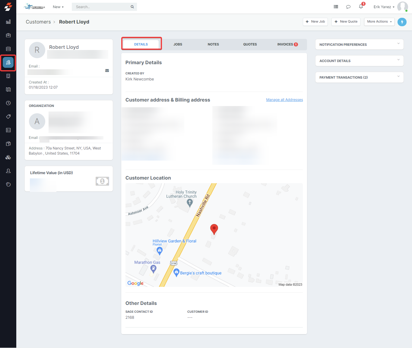 You can view the “Sage Customer ID”