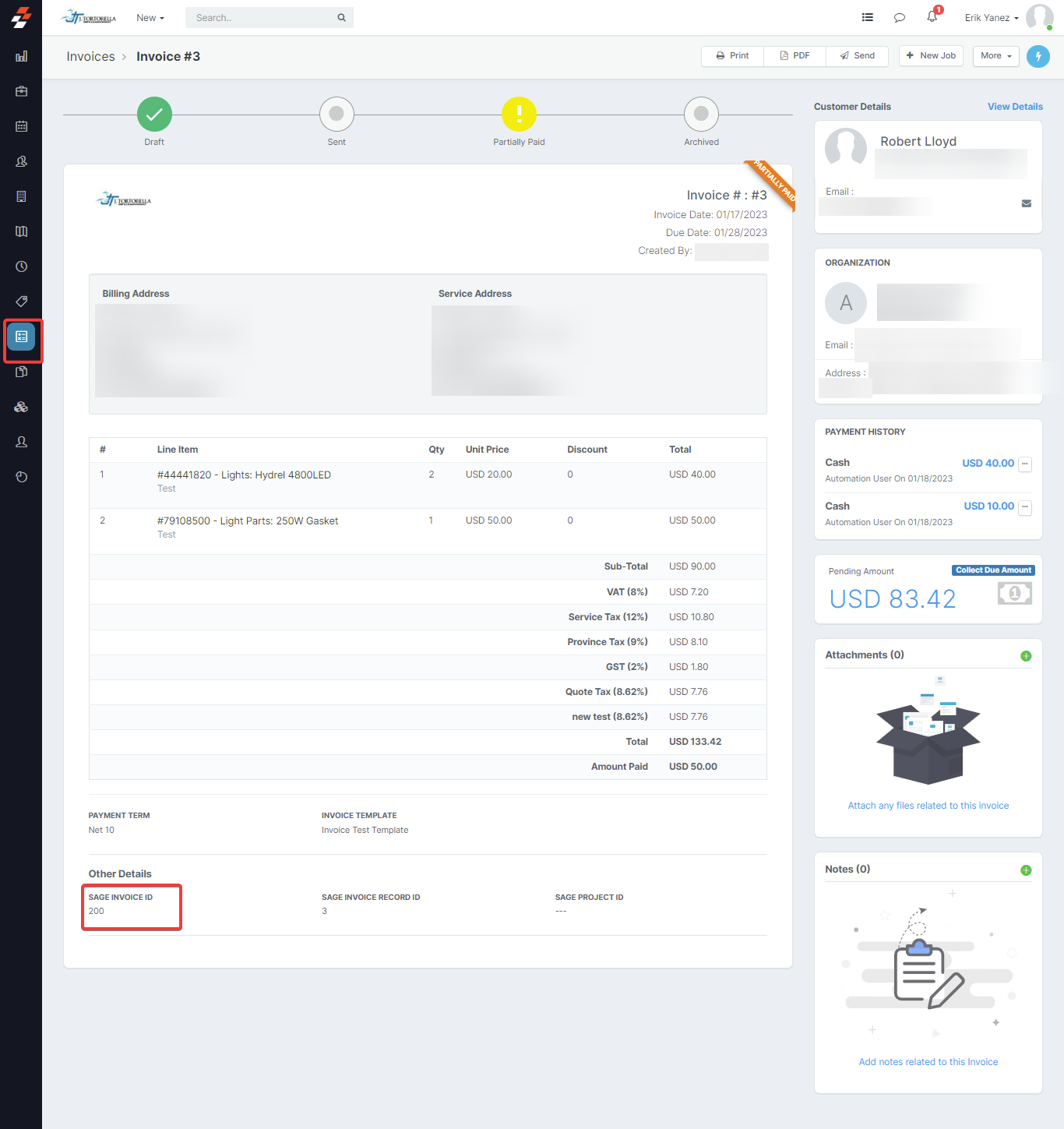 4. The data from Payments in Sage get synced with Payments in Zuper.