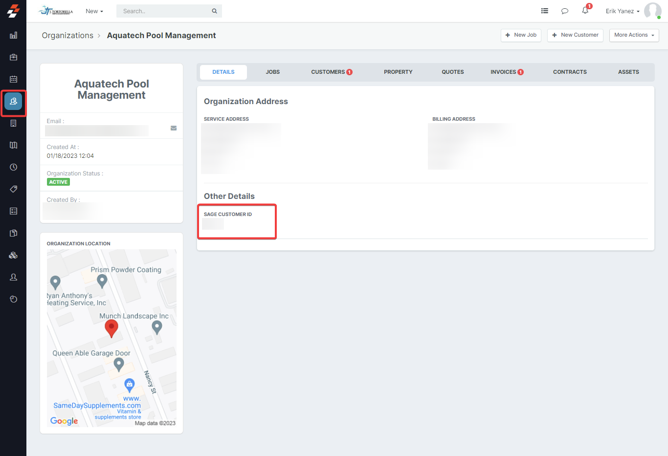 When you choose the Organizations module in Zuper, any changes made to it, including the field creation and updates, will sync with the Sage Customers module.