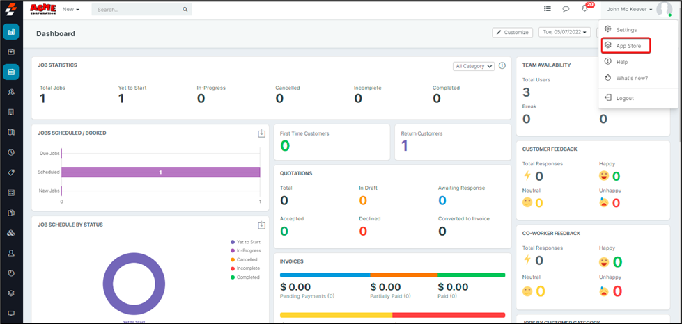 1. Open a new tab in your browser once you are logged in to your Zuper Account.