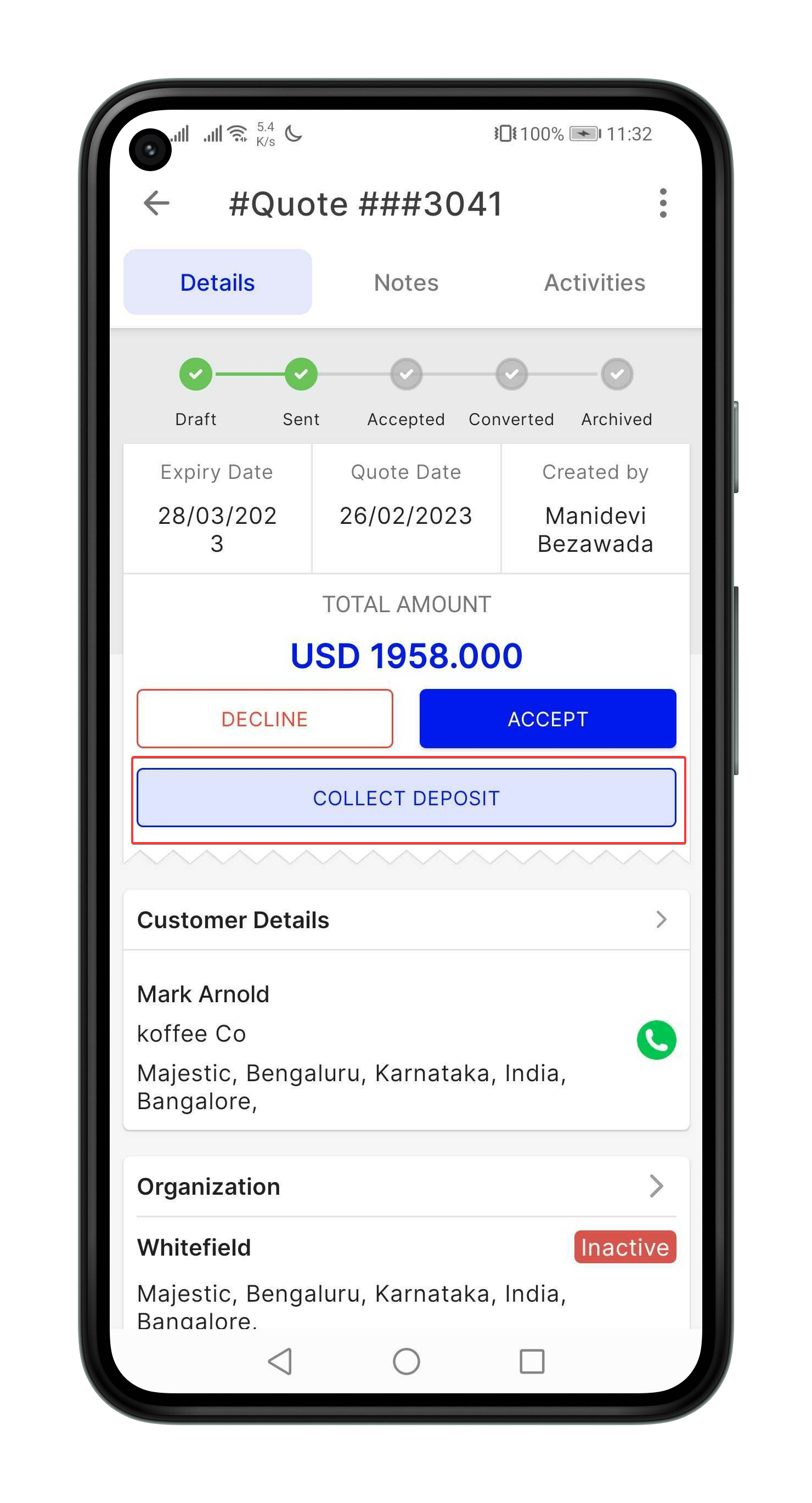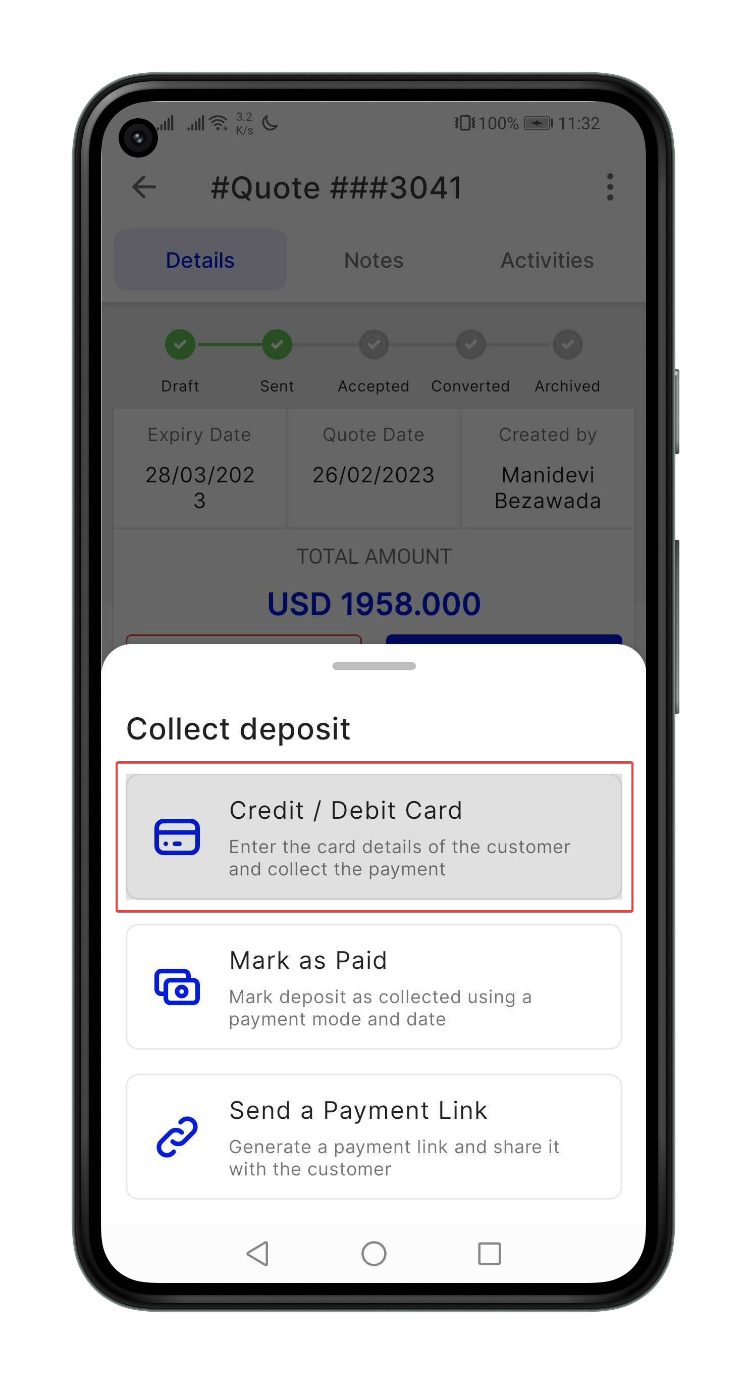 Similarly, you can collect payments for invoices also.