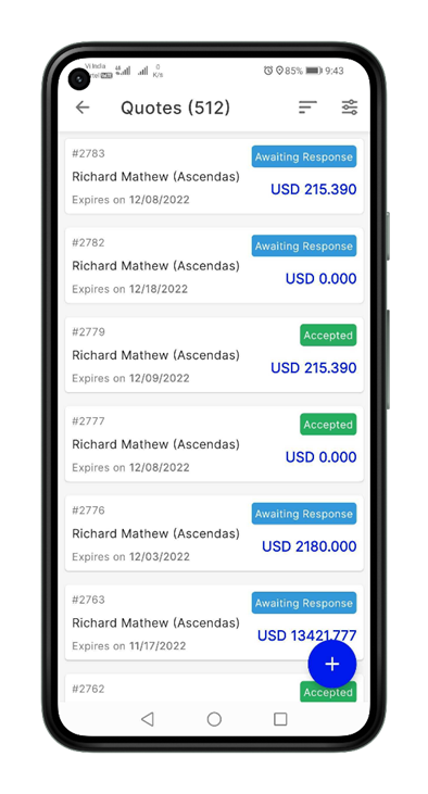 1. Select the "Quotes" module from the top-left hamburger icon