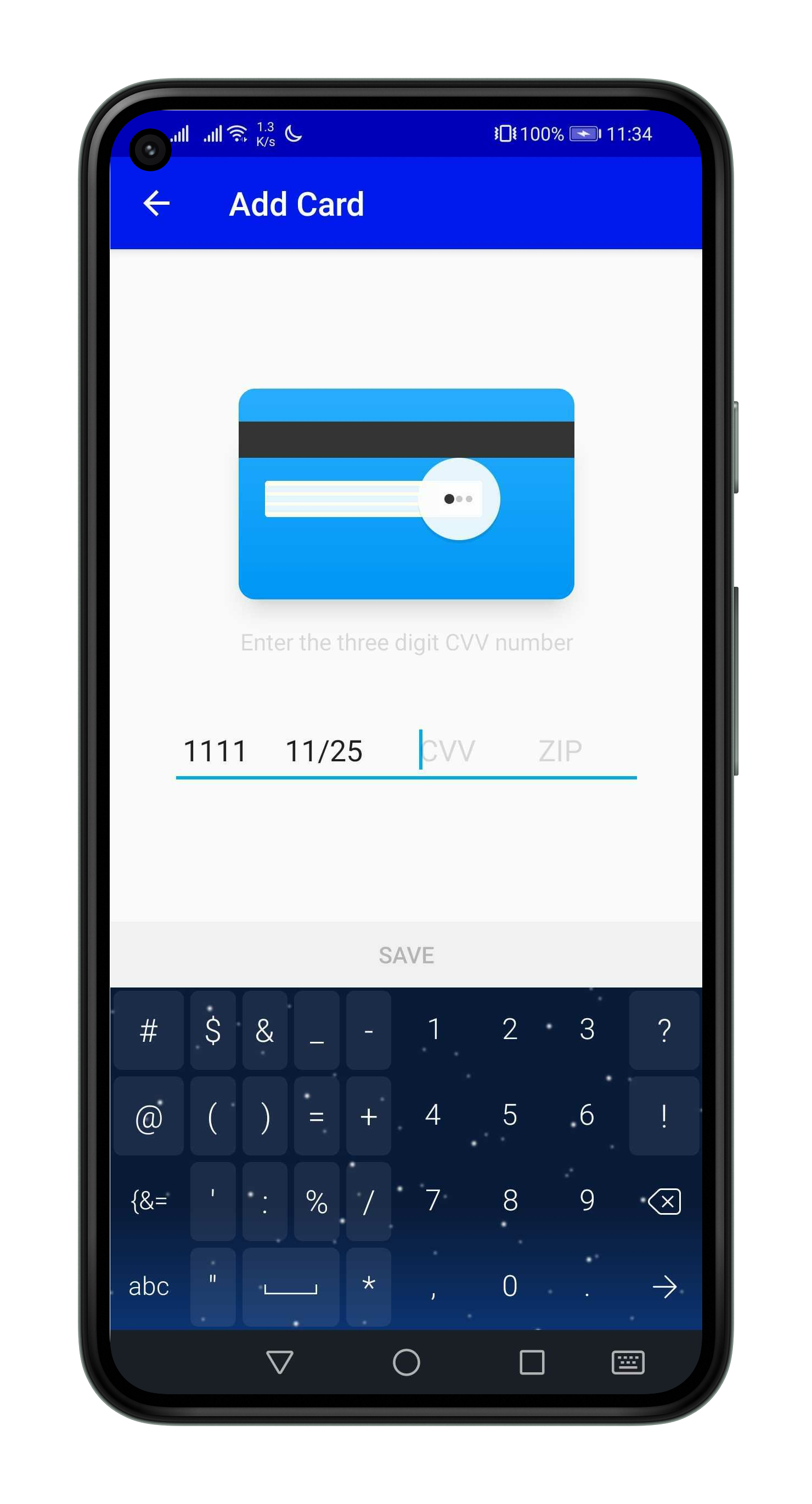 will be shown to the customer if they want to save the entered card details.