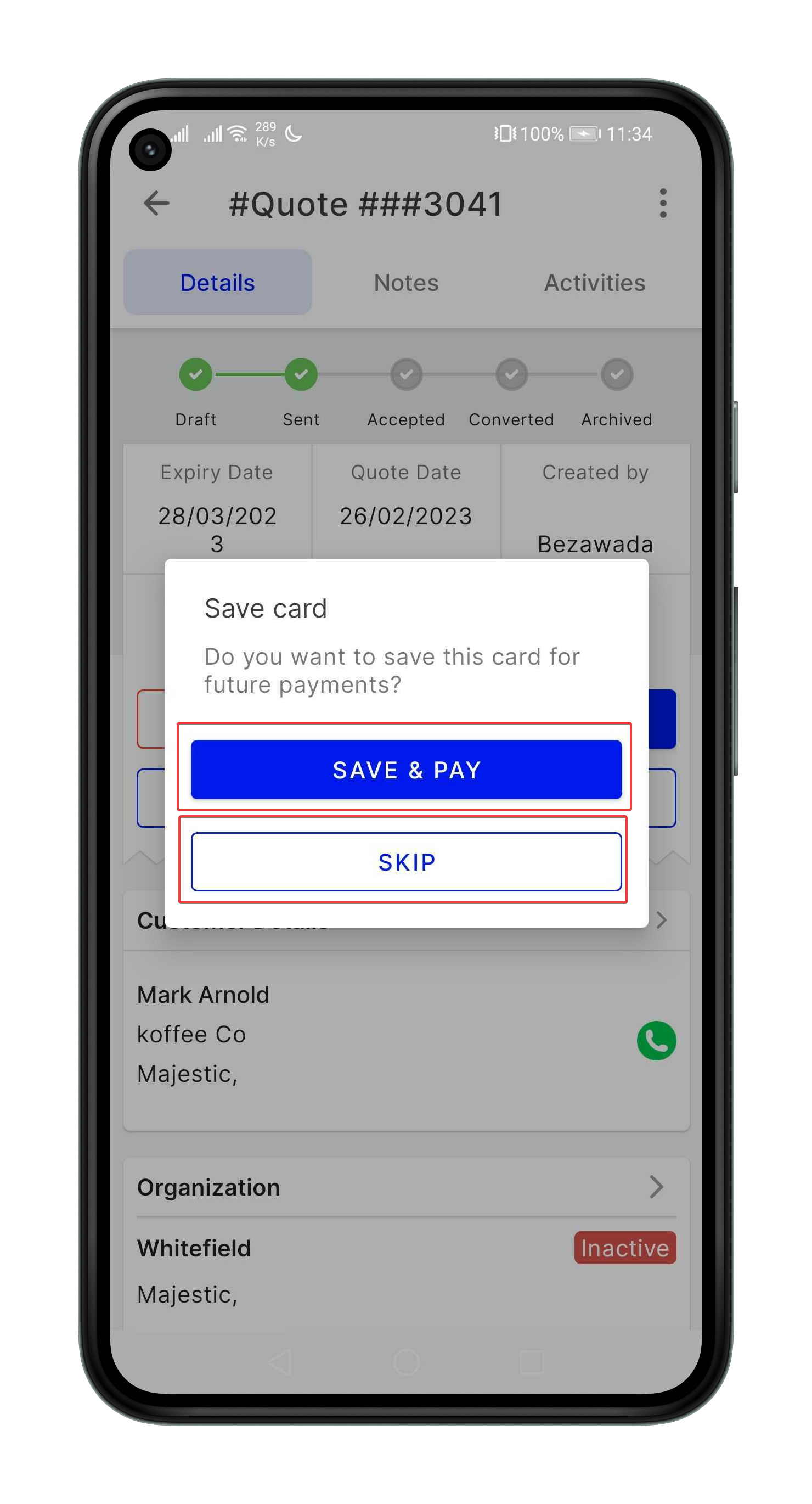 making the payment, whereas selecting SAVE and PAY will first save and then