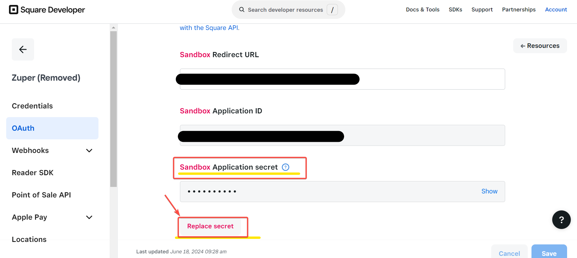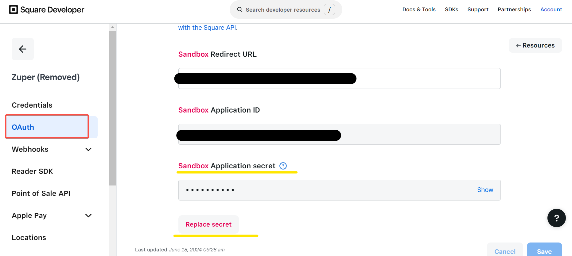 5. You can view the Application Secret code. Replace the code by clicking "Replace secret."