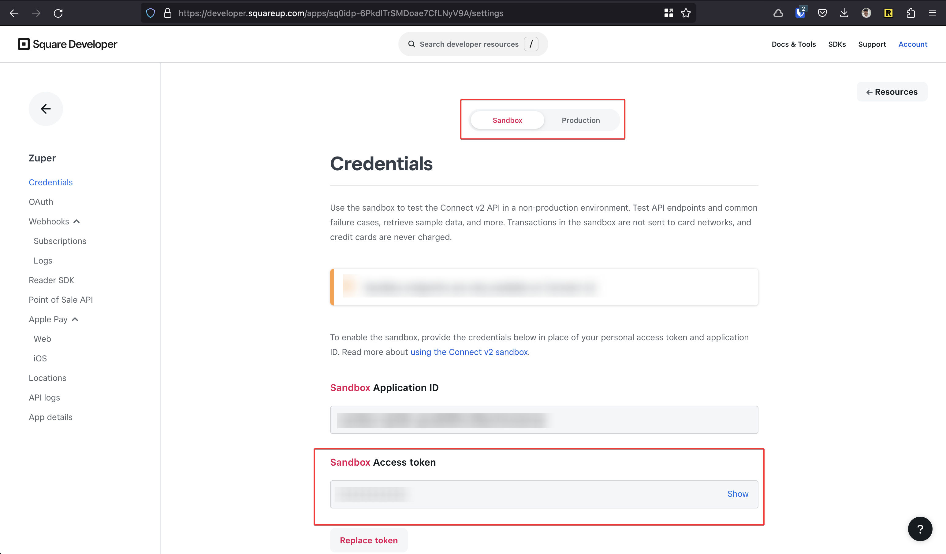 3. Get the access token from Sandbox or Production account: