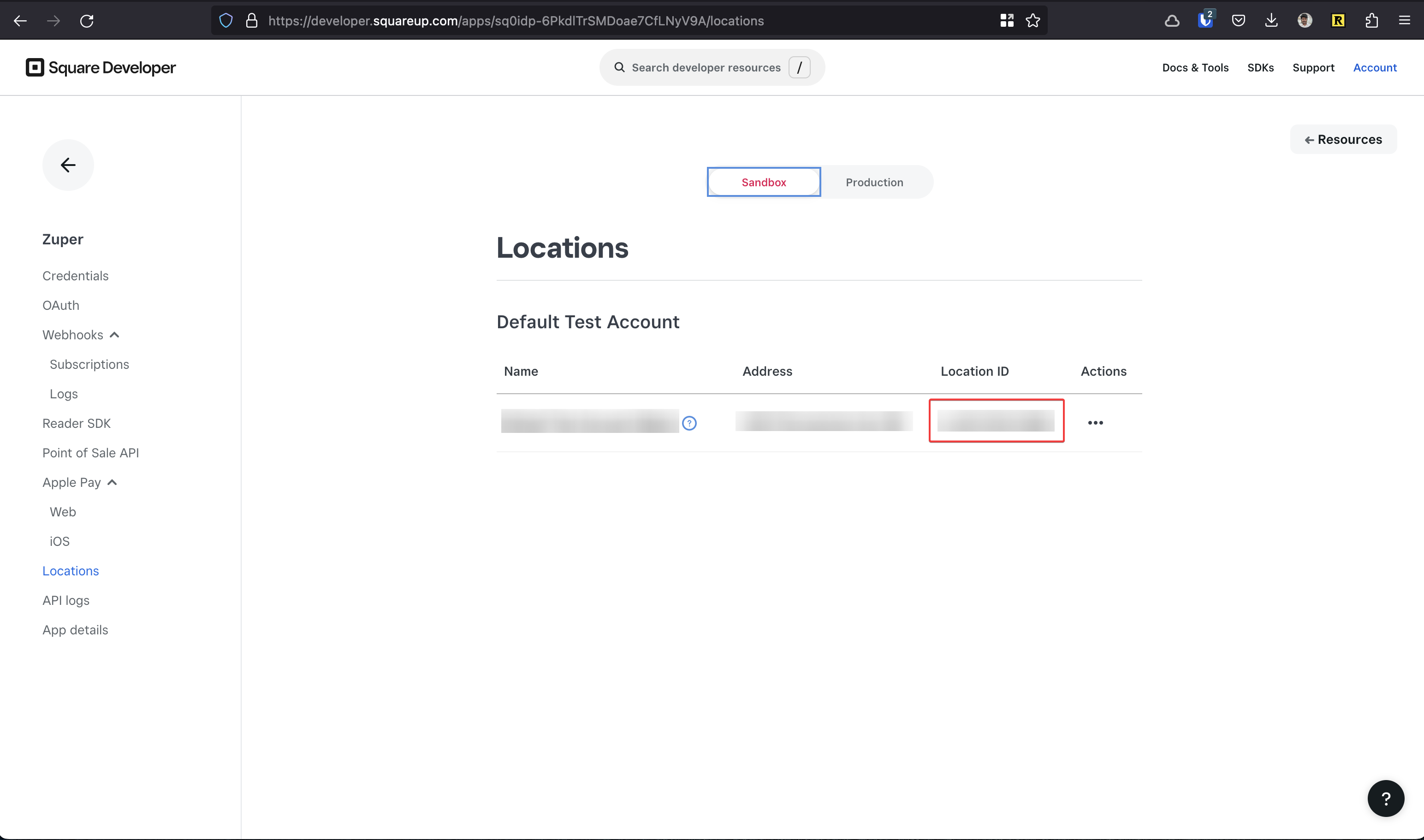 4. From the locations page, we can find the Location ID.