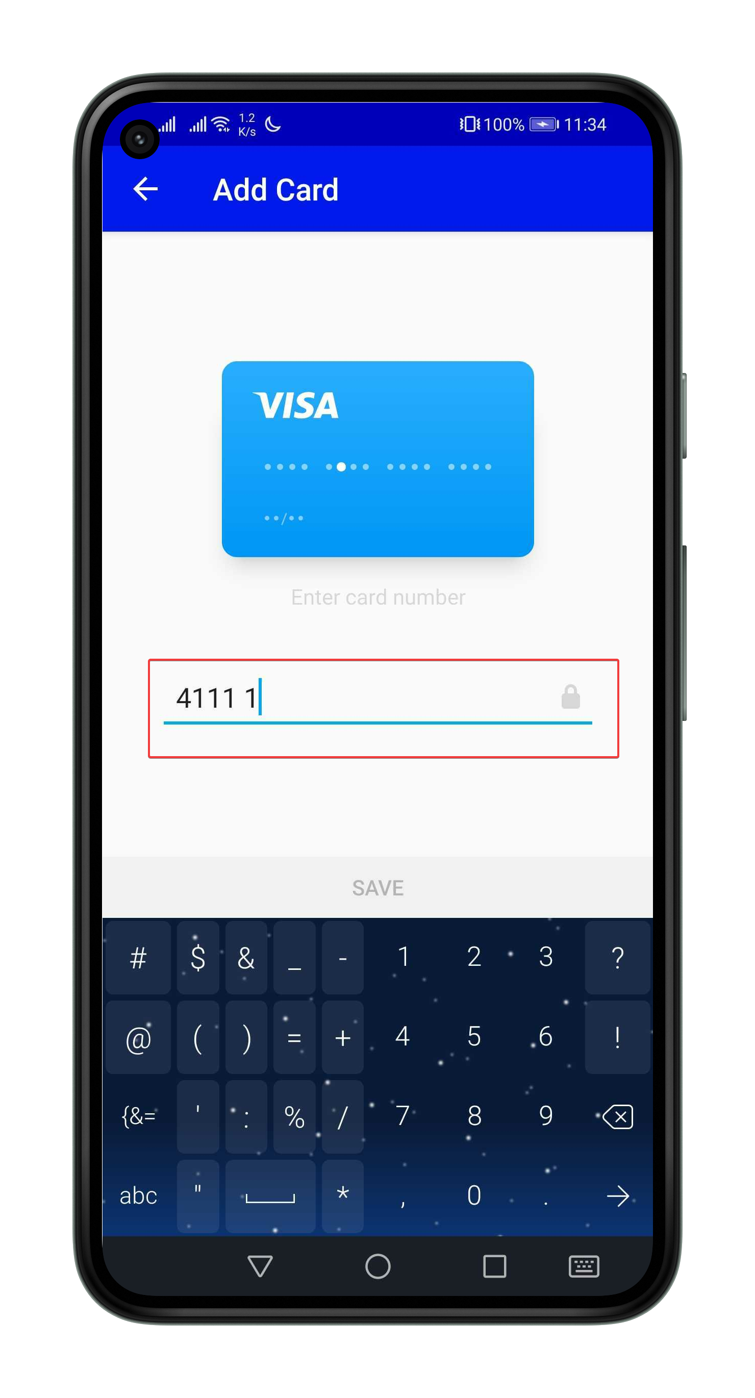 will go ahead and add a new card screen.