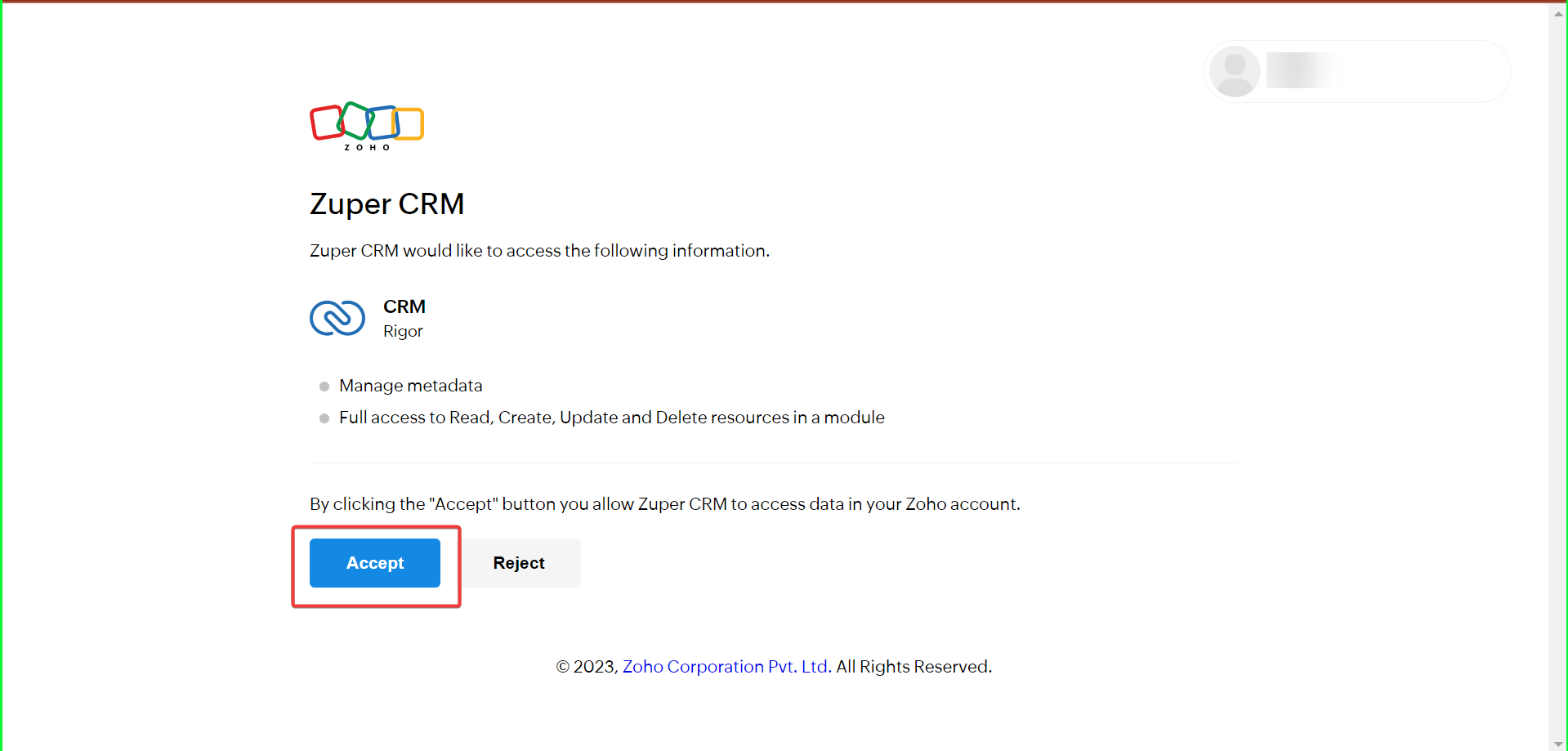 b. Zoho Region (Mandatory) – Europe, India, and Australia; this will be automatically ed based on the Zoho regions. You can choose from the drop-down list if the region is not ed automatically.