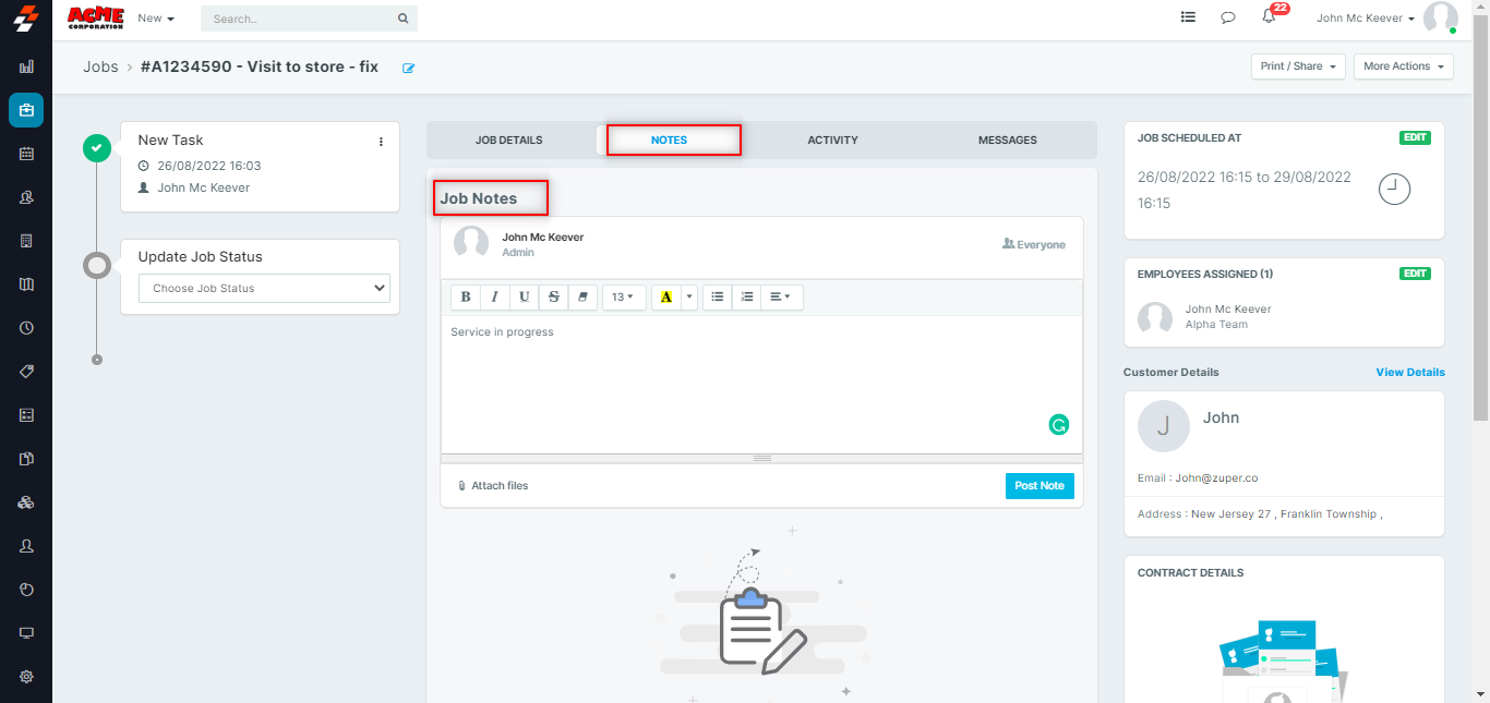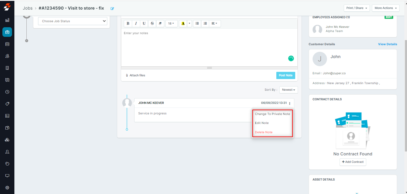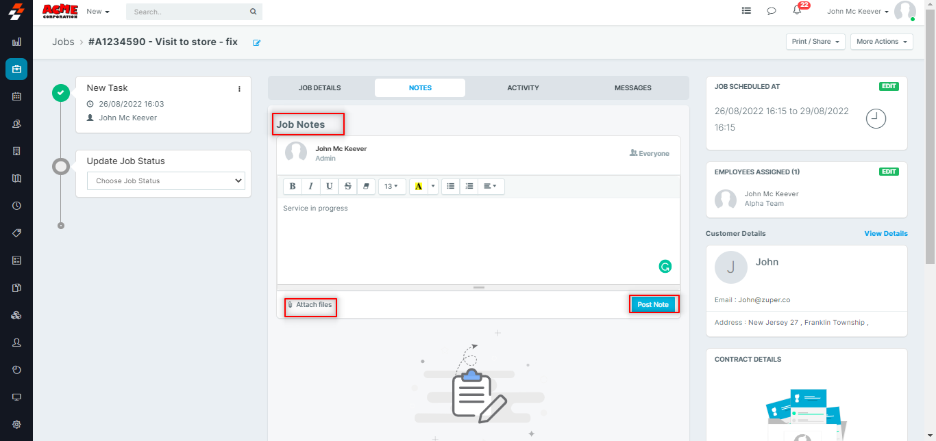 The process of creating job notes in Zuper is pretty easy. To create new job notes,
