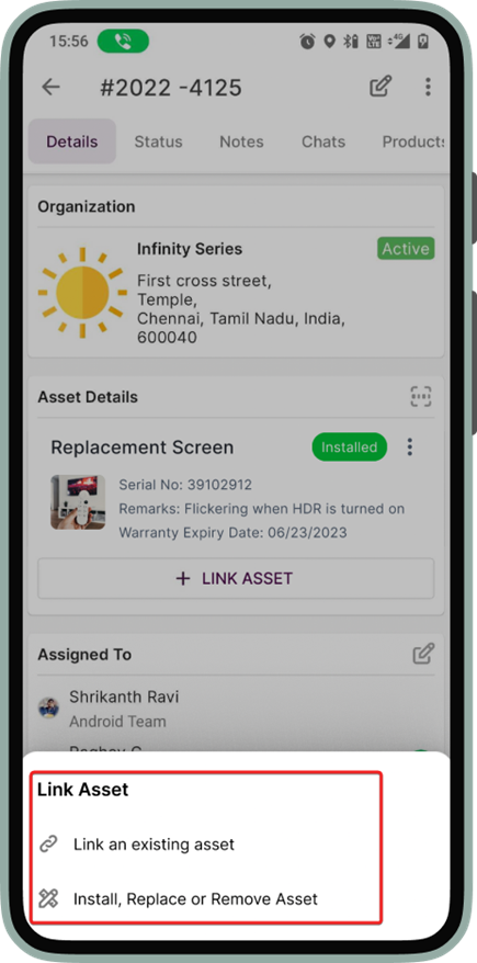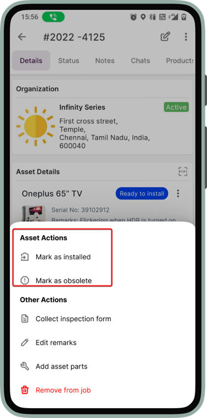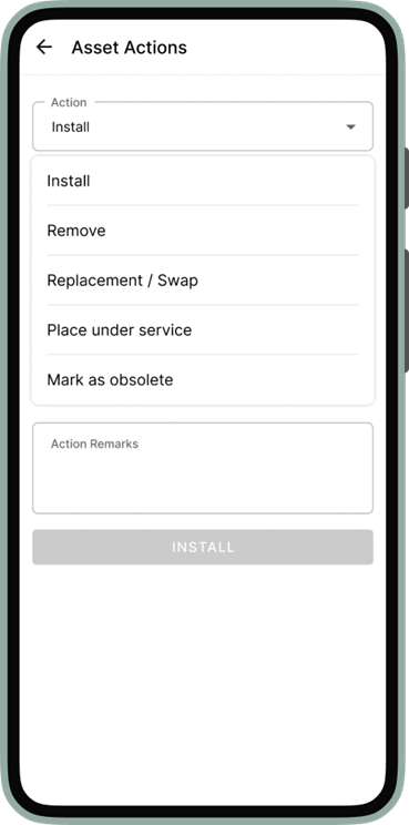 The Asset actions help to maintain and track the assets optimally. The current asset status can be noted; based on that, the user's required jobs are created and assigned.