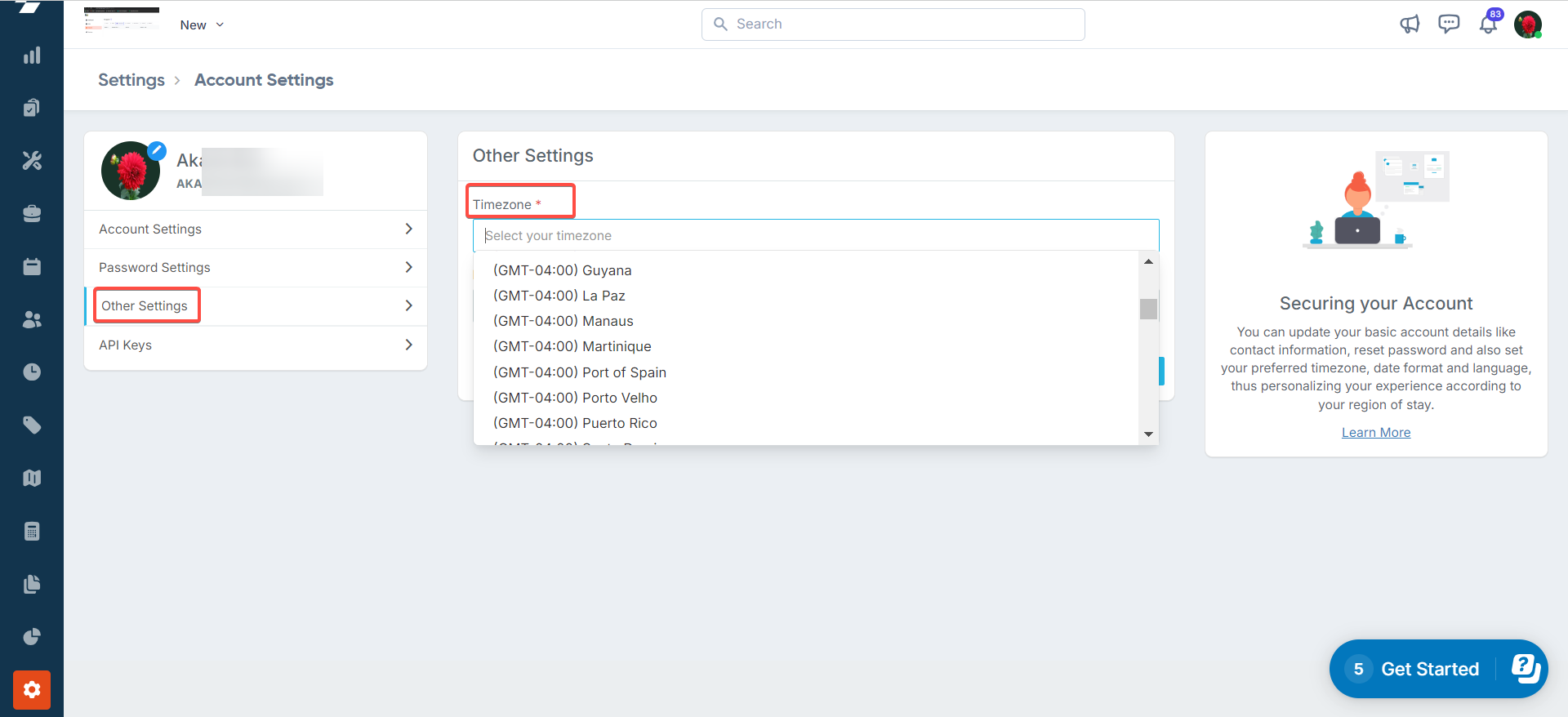 2. Under the “Preferred Time zone” field, choose the customer or organization's preferred time zone from the dropdown. You can also search for a time zone in the dropdown.