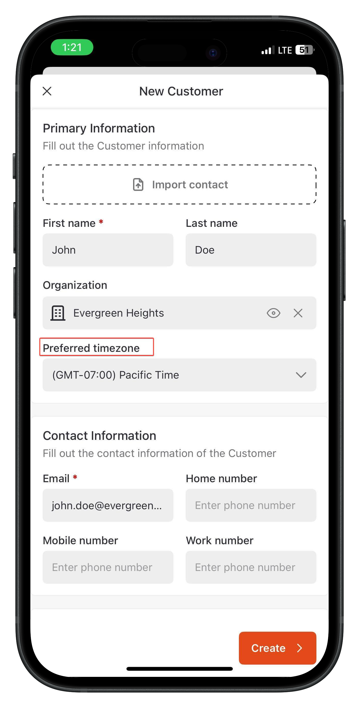 You can set the preferred time zone for a customer or organization on the mobile app as well. Here’s how: