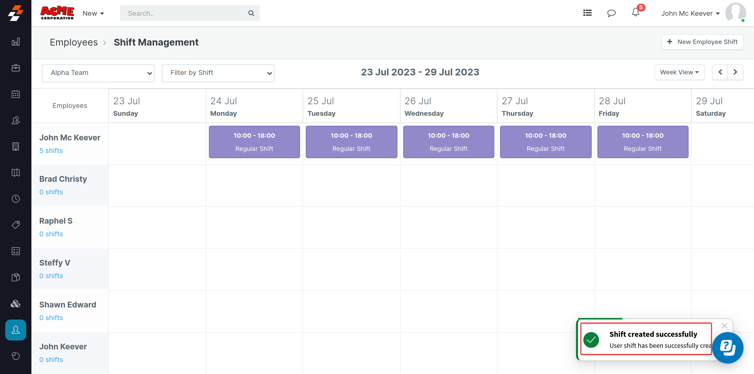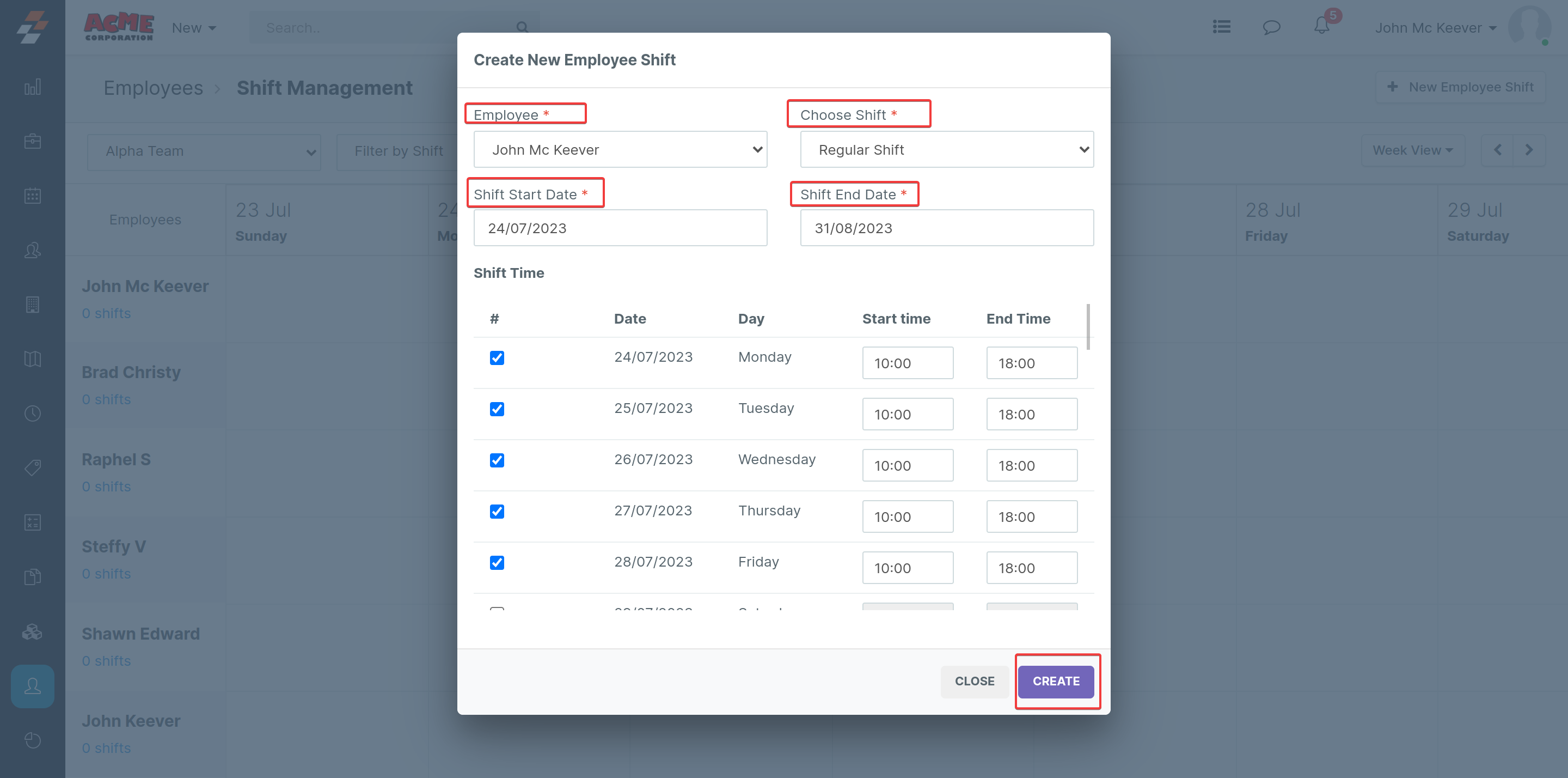 With this new feature, shifts required for the employees can be repeatedly created, and this helps the business define the shift timings once and reuse them many times.