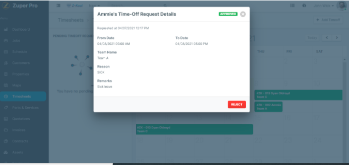 The timeoff requests feature in Zuper is designed to streamline the management of employee leave requests. It allows you to efficiently handle time-off requests, eliminating the need for paperwork by enabling a fully digital process. With built-in ...