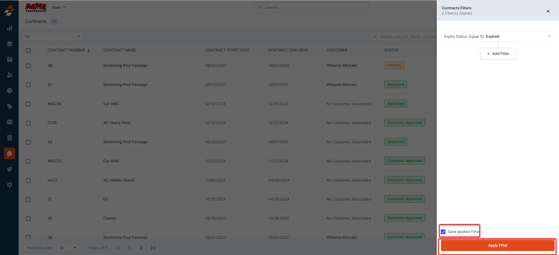 A checkbox on the "Save Applied Filter" will help you to save the filter as "Quick Filter."