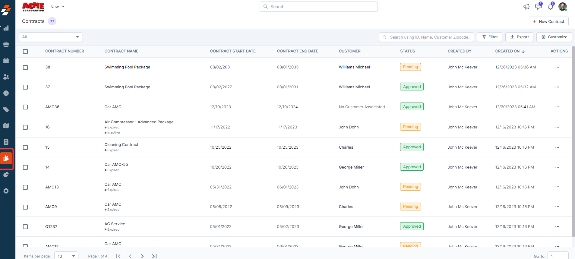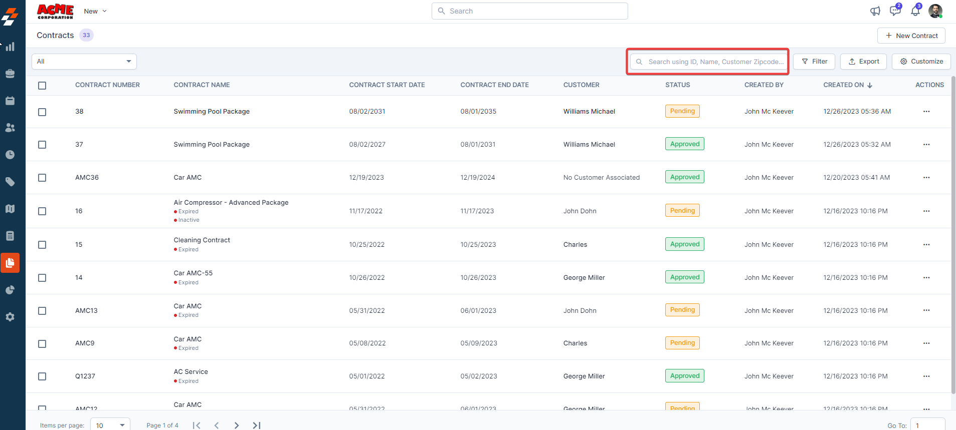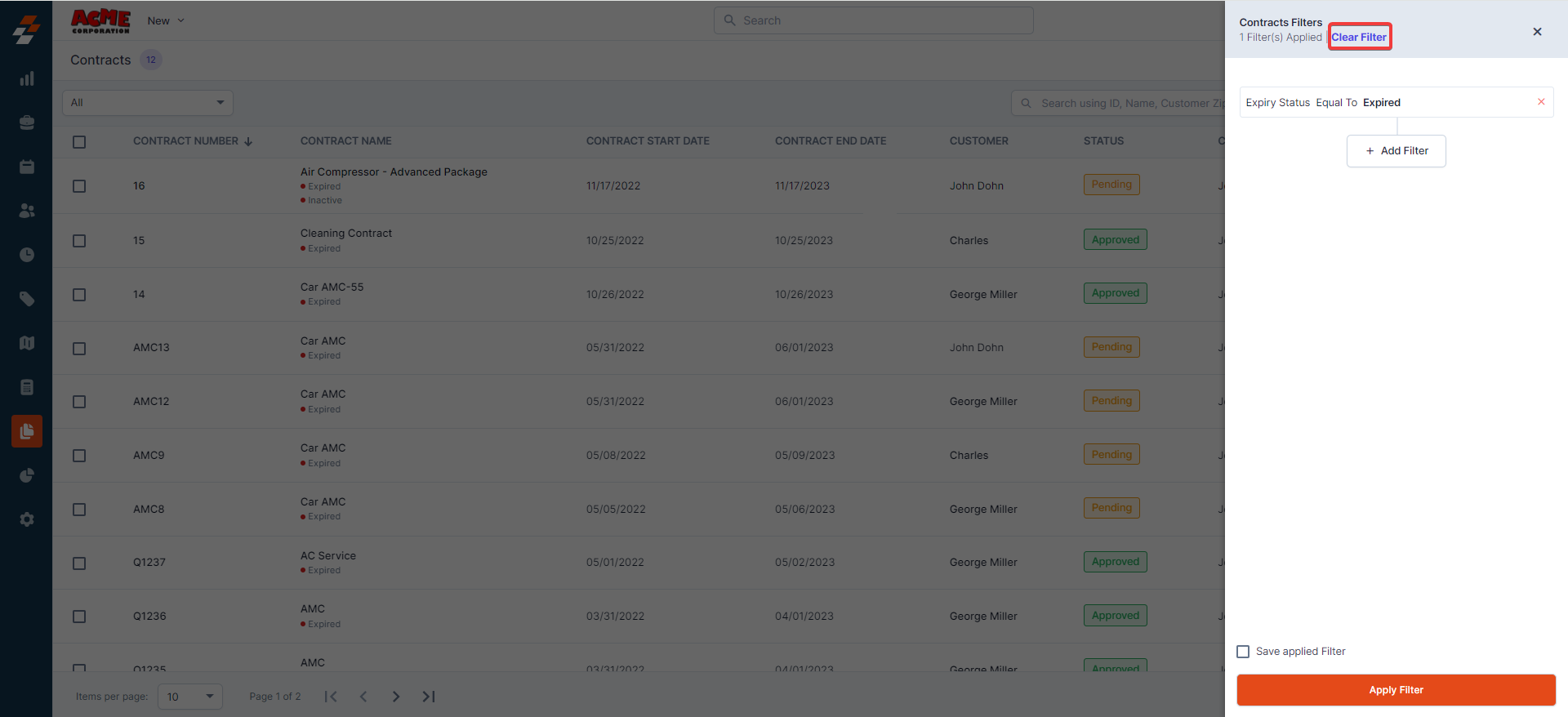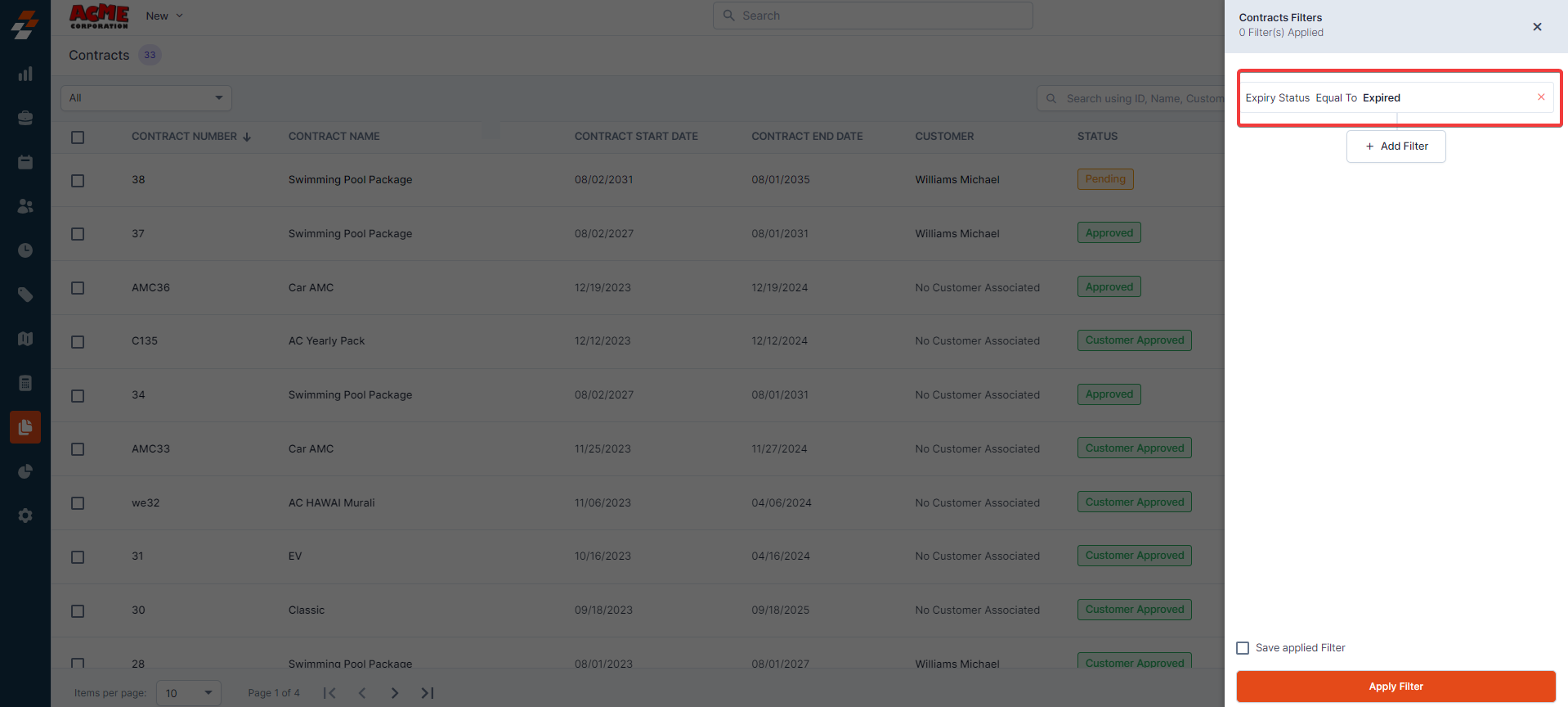 Note: You can click on the column 'Contract Name’ to sort the contracts by ascending or descending order.