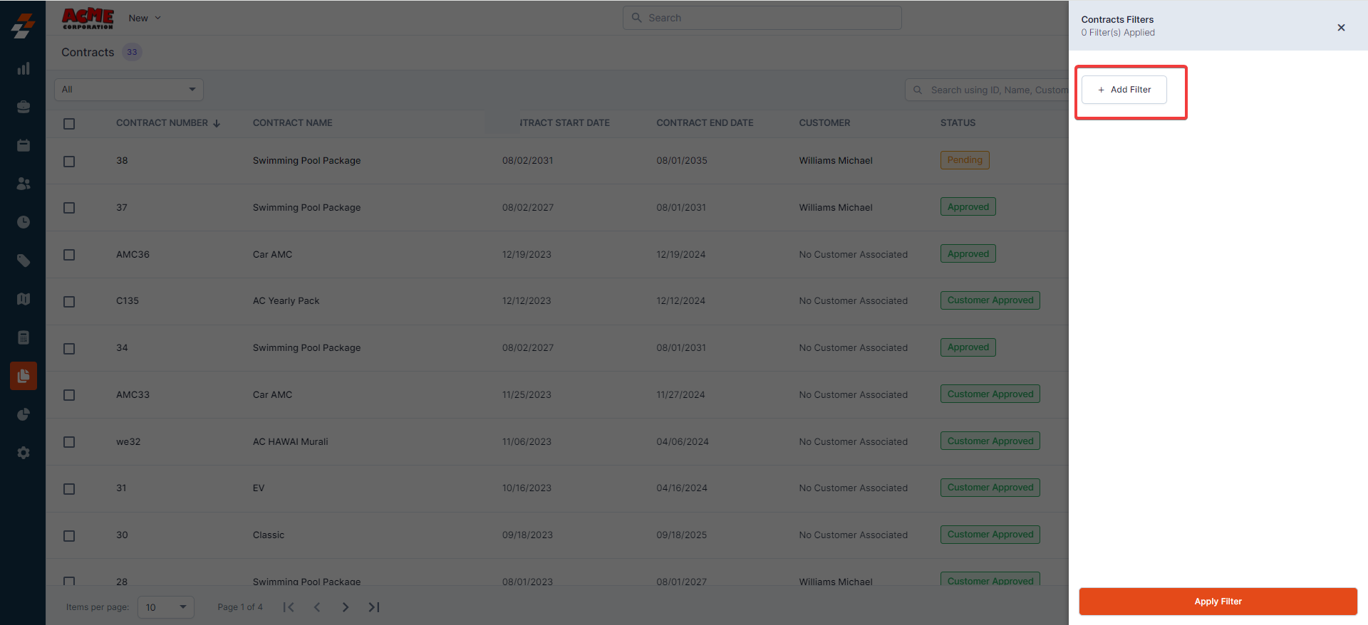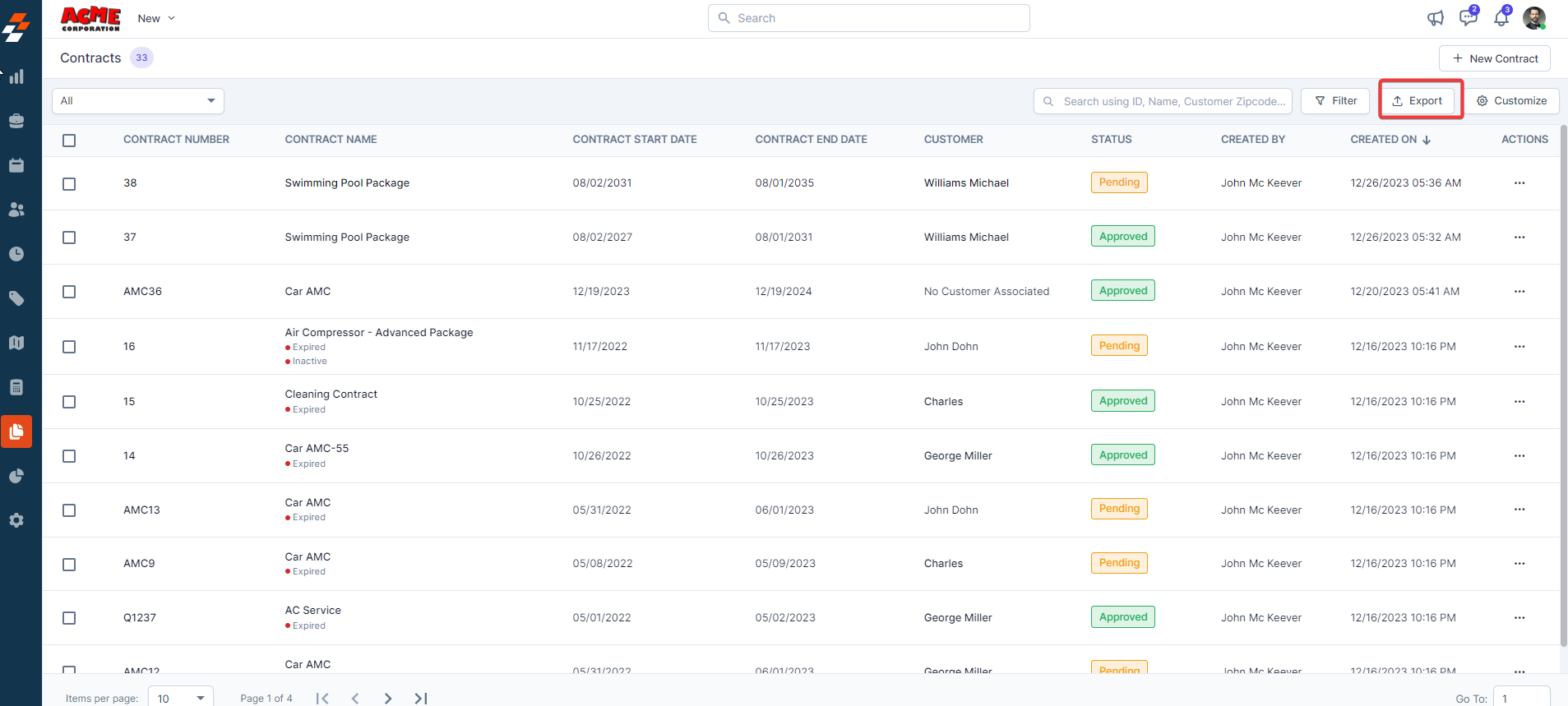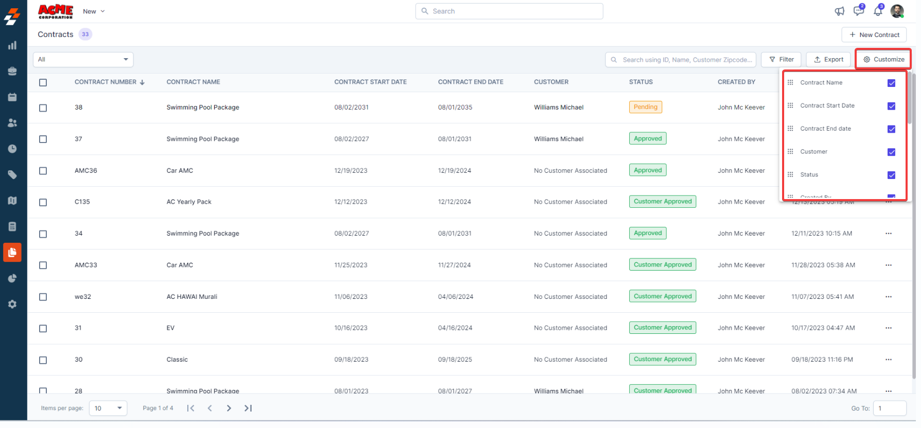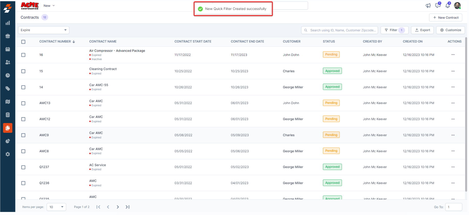 Note: You can click on the column 'Contract Name’ to sort the contracts by ascending or descending order.
