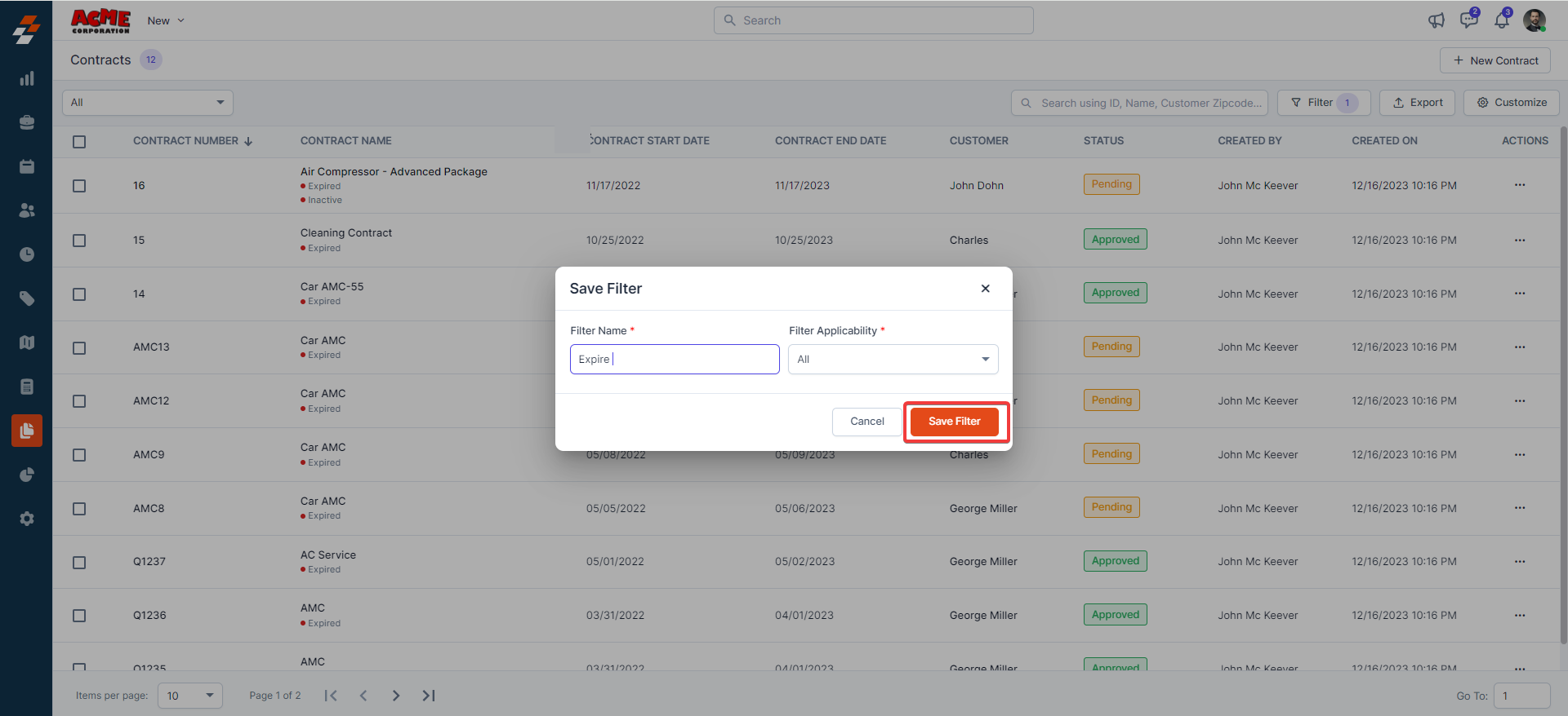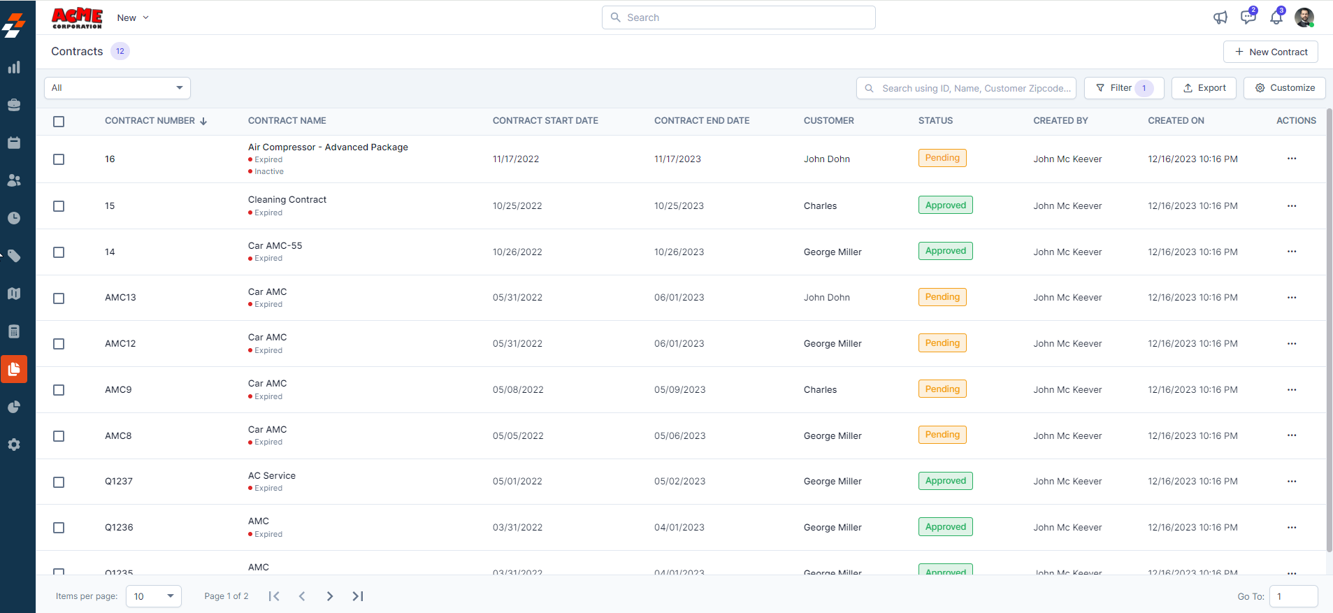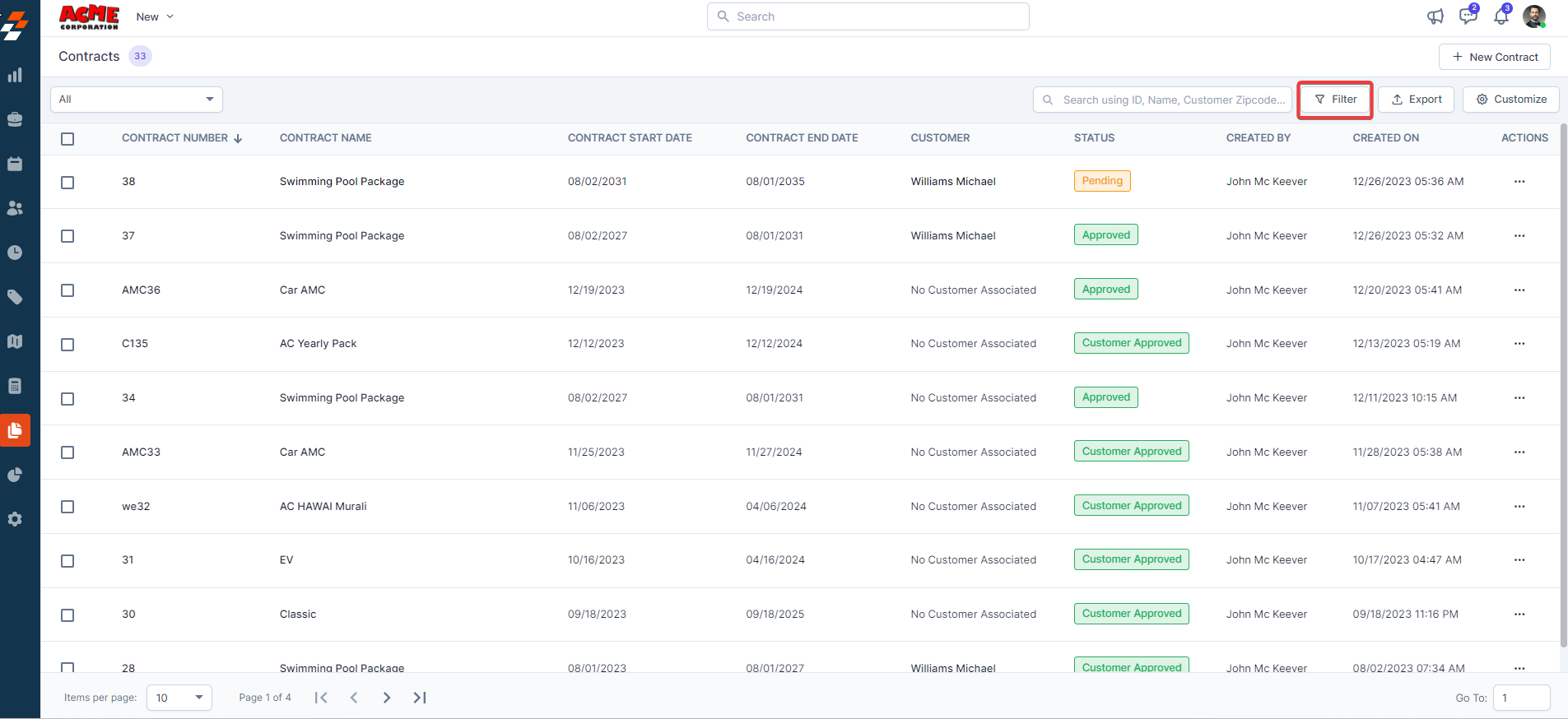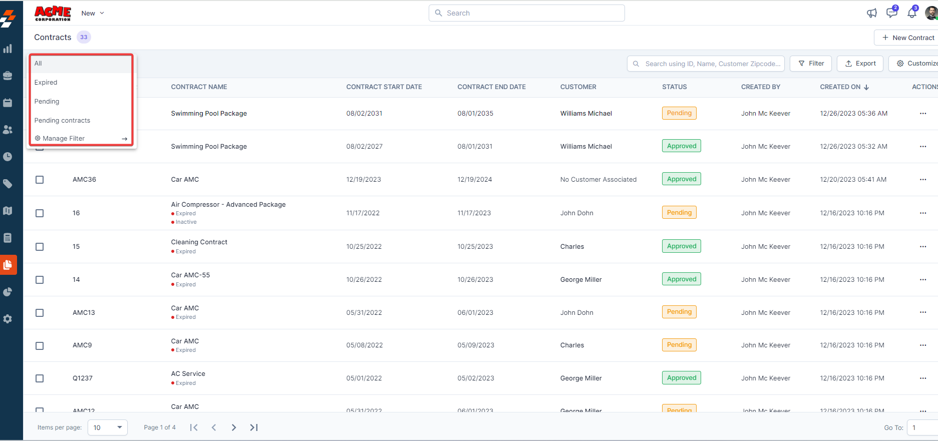 Note: You can click on the column 'Contract Name’ to sort the contracts by ascending or descending order.