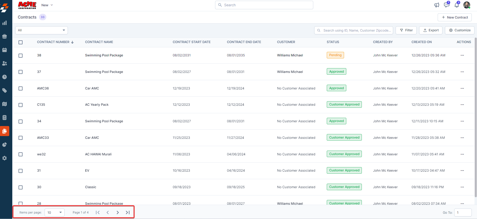 9. The bottom panel enables you to customize the items per page, and You can use right and left arrows to navigate between the pages.