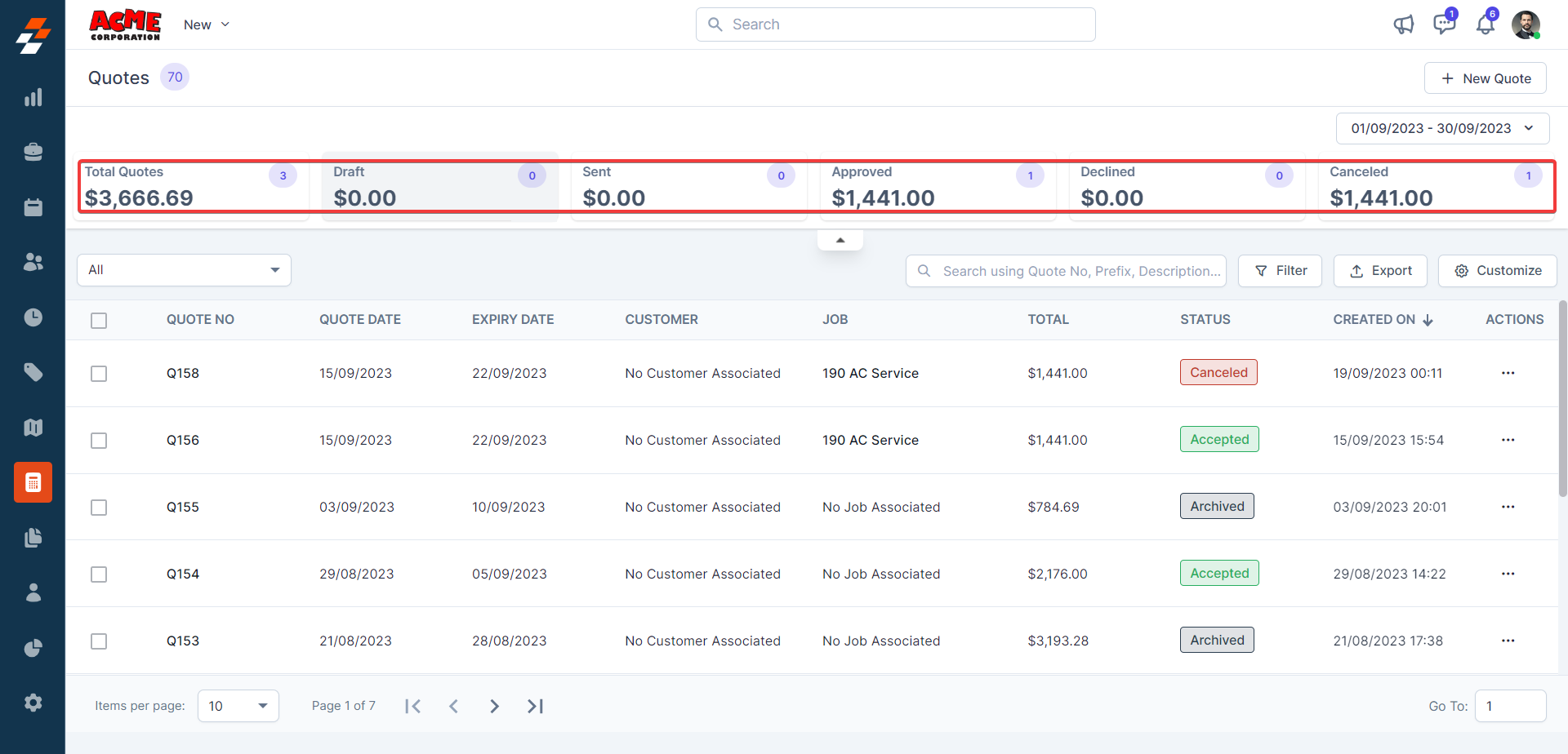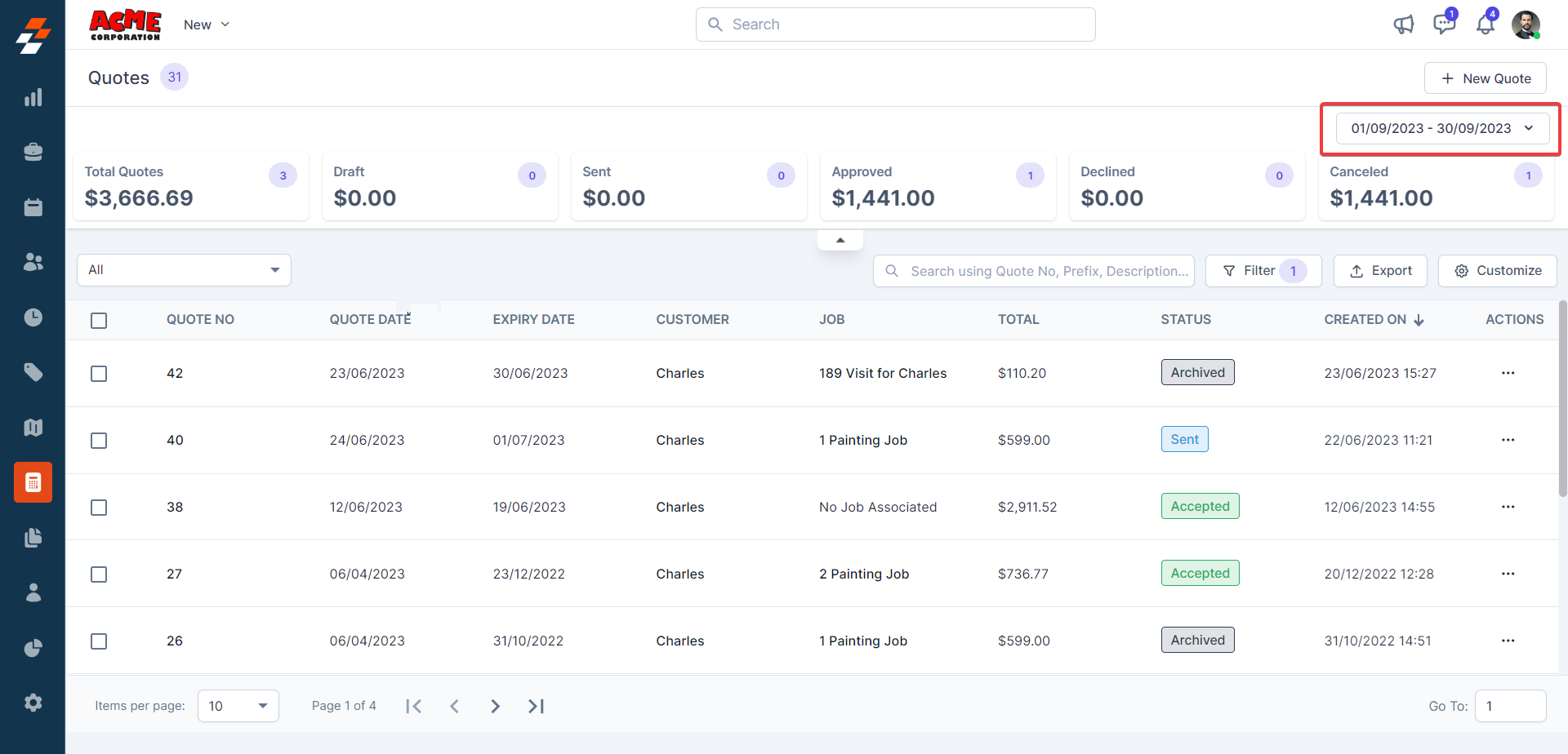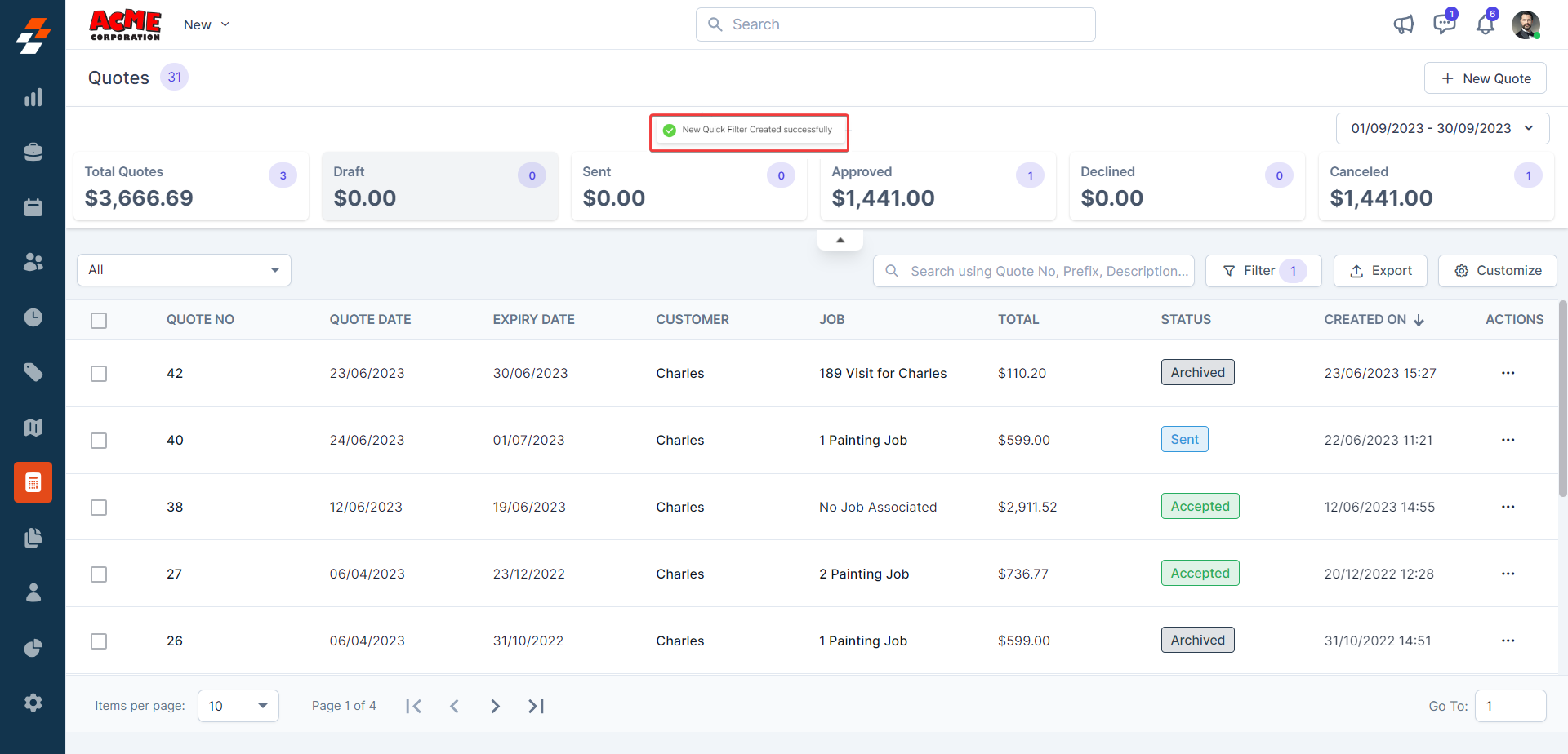 3. You can view the "Quote Summary," which shows the quotes' summary based on the status.